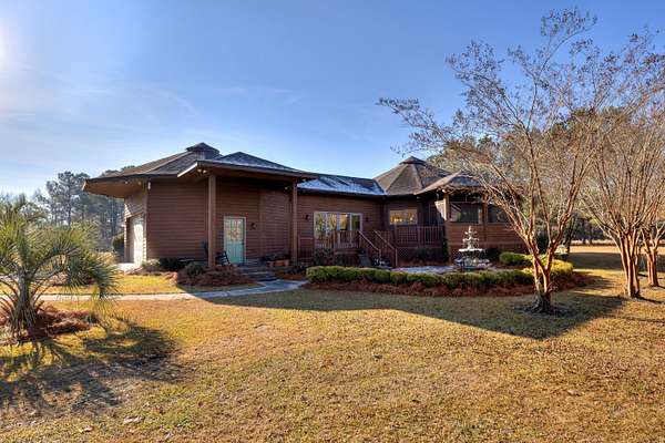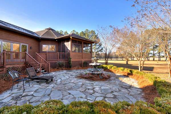 This uniquely designed 3-bedroom, 2-bath home features beautiful cypress siding and an open floor plan filled with natural light, all situated on a little over 5 acres of peaceful countryside. The home offers granite countertops, a brand-new HVAC system with a 10-year warranty, and a 2-car attached garage. Outdoor amenities include a screened-in porch, a large back deck ideal for enjoying the outdoors, a circular driveway, and no neighbors behind or beside the property, providing exceptional privacy. A detached workshop with RV hookup adds even more versatility. Conveniently located just 15 minutes from Shaw AFB, 10 minutes from downtown Sumter, and 10 minutes from shopping and restaurants, this property perfectly blends quiet country living with everyday convenience.