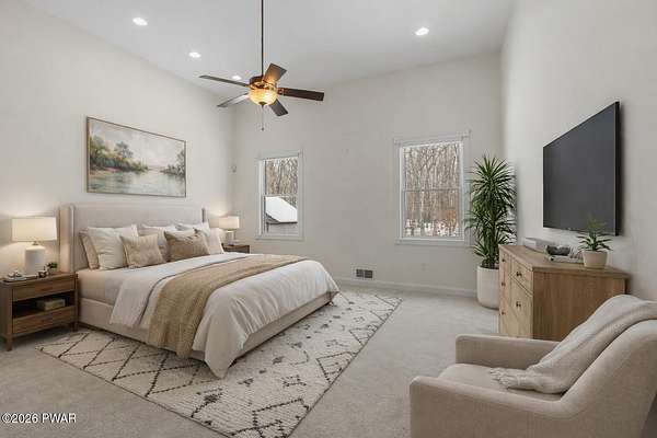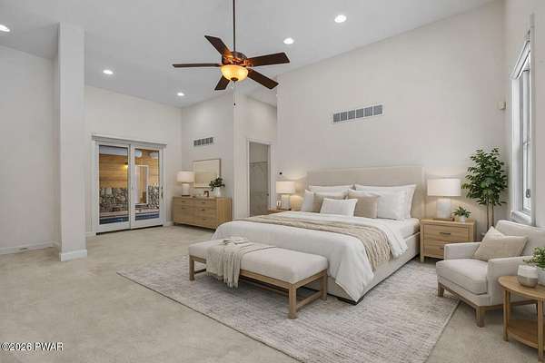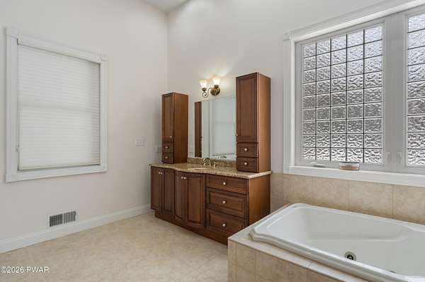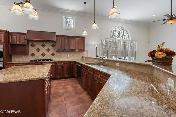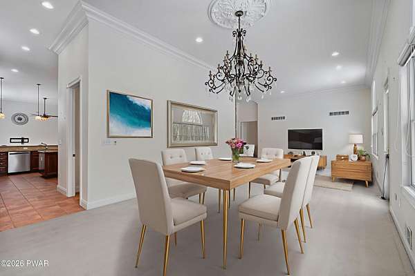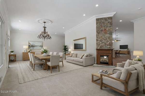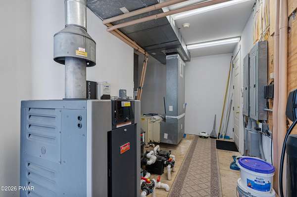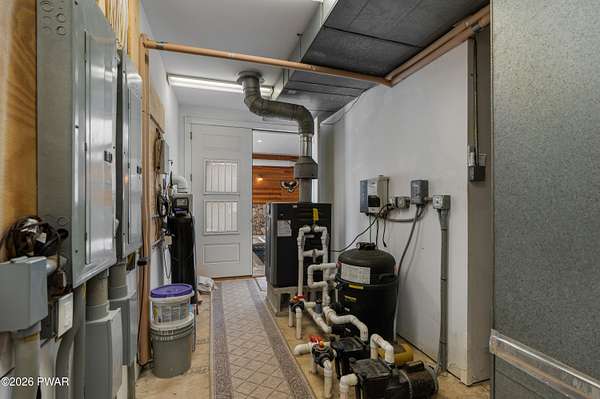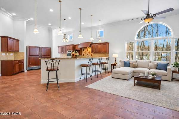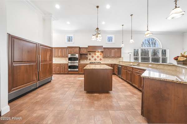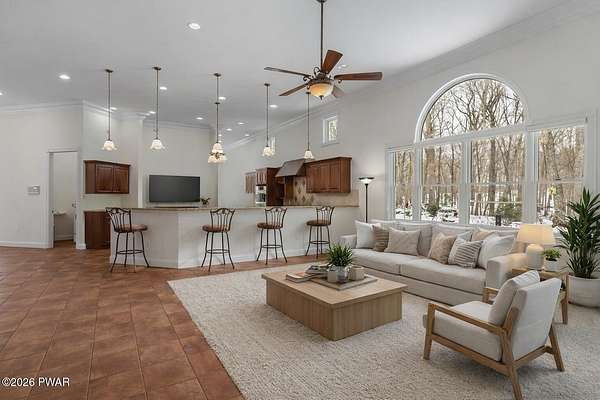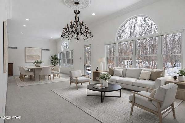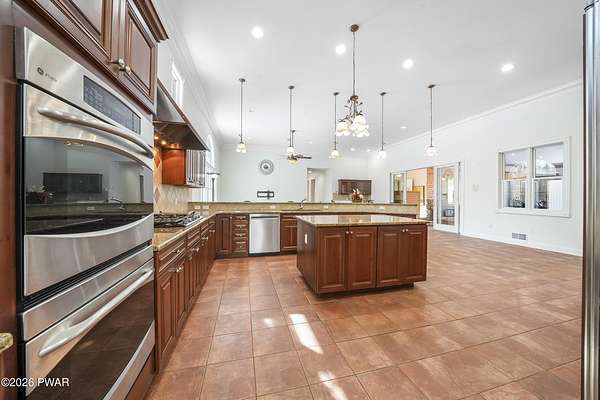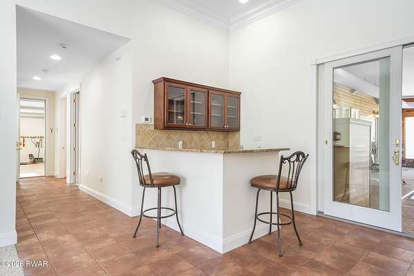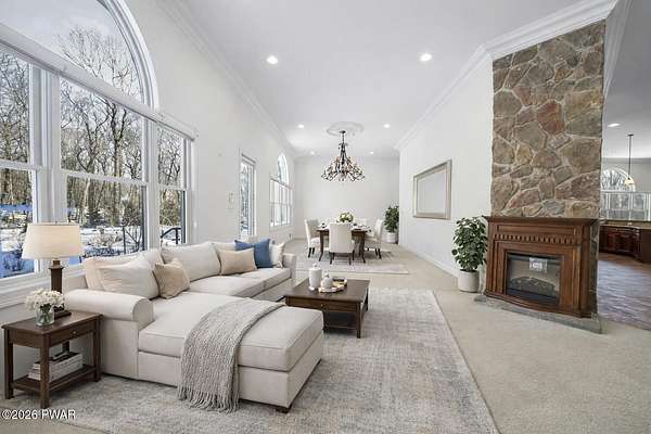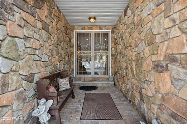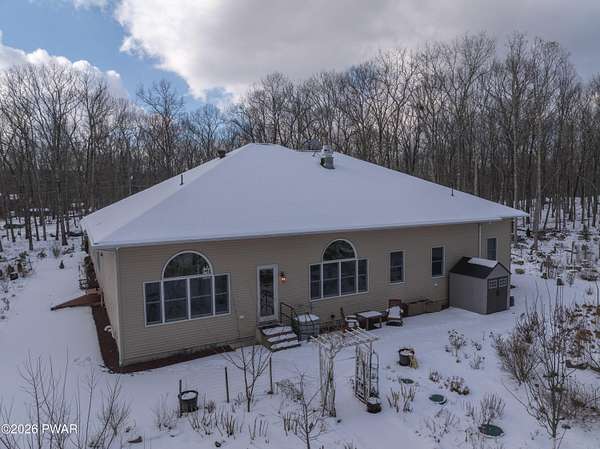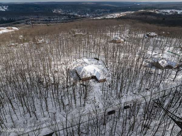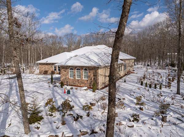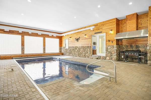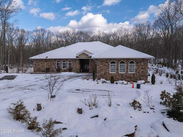 This custom ranch delivers a true luxury rarity: a fully integrated, year-round indoor heated pool/hot tub retreat designed for daily use, not just admiration! The heated pool can be set up to 100, enhanced by a mineral system for softer water and fresher air, with heated brick floors, a cascading hot tub, and a two-person infrared sauna. A poolside Blackstone grill with a commercial-grade hood makes entertaining effortless, no matter the season. The floor plan balances openness with privacy. The primary suite occupies its own wing with dual vanities, a soaking tub, and two large walk-in closets. A separate studio suite off the pool area offers its own kitchenette and full bathroom (ideal for guests or multigenerational living) while two additional bedrooms and a full bath provide comfortable accommodations for family and friends. The kitchen features high-end appliances, including a Sub-Zero refrigerator, and is designed for both everyday living and elevated entertaining. Beyond its visible luxury, this home is exceptionally well-equipped behind the scenes. A 22kW Generac whole-house generator provides seamless backup power, while a brand-new Owens Corning Premier roof with 50-year warranty, copper inlays, and architectural accents delivers both longevity and curb appeal. A new boiler and new well pump (with five-year warranty) ensure efficient, worry-free operation. The property is further enhanced by a Tier-1 security system with eight 4K cameras and reinforced security doors, a central vacuum system, and 50-amp service suitable for an electric vehicle or Class-A RV--thoughtful upgrades that elevate comfort, safety, and long-term value. Set on two landscaped acres designed by a Master Gardener, the grounds offer an Old English aesthetic with low-maintenance appeal. An adjacent 2.5-acre parcel is available for those seeking additional privacy. Located minutes from Lake Wallenpaupack, the public boat launch, & the heart of Hawley, this home offers year-round fun!