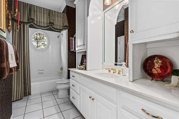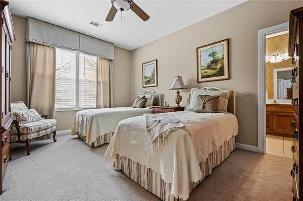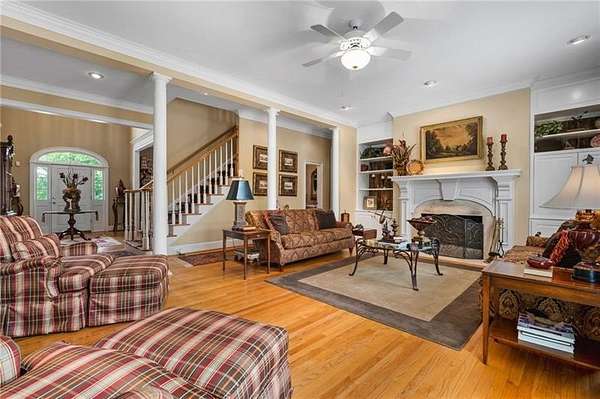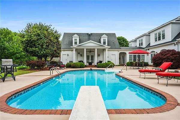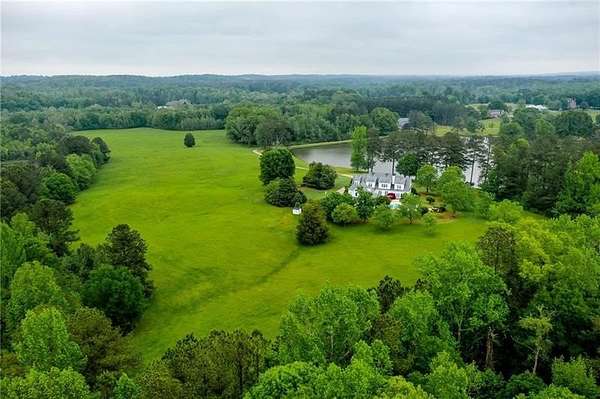 Experience serene, southern living on this magnificent 38.2 acre estate with stunning, unobstructed lake views. Relax on the welcoming front porch that overlooks the peaceful water. Inside, a grand two-story foyer open to the formal living and dining rooms, ideal for entertaining. The spacious family room featuring a fireplace and has French doors overlooking the pool area. The gourmet eat-in kitchen boasts custom, painted ash cabinets, granite countertops, a travertine tile backsplash, four burner glass cooktop, warming drawer and is open to a cozy den/keeping room connected to a portico leading to the three-car garage. Conveniently located off the kitchen are the laundry room and private office space. The main floor owner's suite is a retreat of its own with a bay window overlooking the pool, a luxurious bath with double vanities and custom walk-in closet. A fantastic guest suite also resides on the main floor for ultimate comfort and privacy. Upstairs you will find three ensuite bedrooms, a versatile den or playroom with surround sound, office, an enormous storage closet ideal for holiday d cor and an additional laundry room currently used as wine storage. Cedar closet on second floor for seasonal clothes. The gorgeous pool area offers sweeping views of the sprawling acreage and is complemented by a veranda and butler's kitchen with sink and refrigerator and secondary full bath off the pool. Above the garage is a massive bonus/rec room perfect for an exercise space, home theatre or play area. New windows on second floor. Lake is shared by one other home. This estate perfectly blends luxury, functionality and the beauty of southern living with the possibility of being a horse farm.