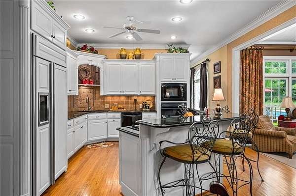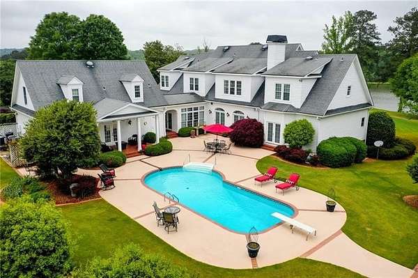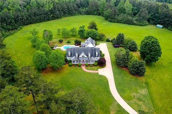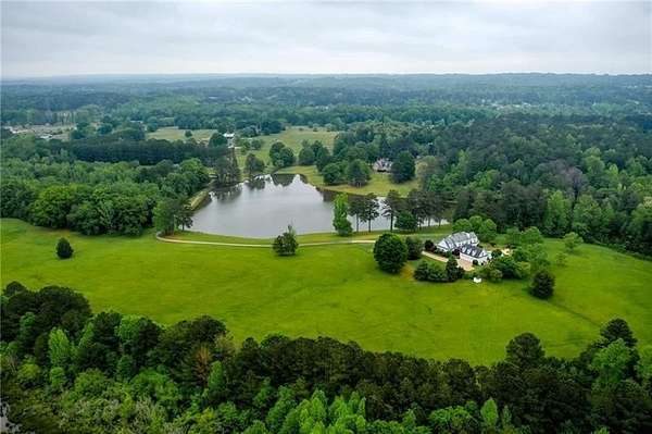 Experience serene, southern living on this magnificent 38.2 acre estate with stunning, unobstructed lake views. Relax on the welcoming front porch that overlooks the peaceful water. Inside, a grand two-story foyer open to the formal living and dining rooms, ideal for entertaining. The spacious family room featuring a fireplace and has French doors overlooking the pool area. The gourmet eat-in kitchen boasts custom, painted ash cabinets, granite countertops, a travertine tile backsplash, four burner glass cooktop, warming drawer and is open to a cozy den/keeping room connected to a portico leading to the three-car garage. Conveniently located off the kitchen are the laundry room and private office space. The main floor owner's suite is a retreat of its own with a bay window overlooking the pool, a luxurious bath with double vanities and custom walk-in closet. A fantastic guest suite also resides on the main floor for ultimate comfort and privacy. Upstairs you will find three ensuite bedrooms, a versatile den or playroom with surround sound, office, an enormous storage closet ideal for holiday d cor and an additional laundry room currently used as wine storage. Cedar closet on second floor for seasonal clothes. The gorgeous pool area offers sweeping views of the sprawling acreage and is complemented by a veranda and butler's kitchen with sink and refrigerator and secondary full bath off the pool. Above the garage is a massive bonus/rec room perfect for an exercise space, home theatre or play area. New windows on second floor. Lake is shared by one other home. This estate perfectly blends luxury, functionality and the beauty of southern living with the possibility of being a horse farm.