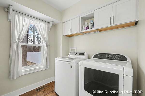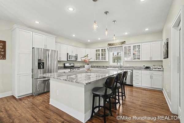 Rare opportunity to own a turnkey 3.85-acre farmhouse in Kenowa Hills! Perfect for the hobbyist or outdoor enthusiast, this property boasts a sprawling 36x60 pole barn and a fenced backyard The 3,101 sq. ft. remodeled farmhouse impresses at every turn, from the spacious kitchen with a center island to the beautiful wood flooring across the main level. The second level primary features a fireplace and spacious primary bathroom. The home offers 3,101 square feet above grade and has been updated throughout. The country setting is ideal yet downtown Grand Rapids is only 20 minutes away.