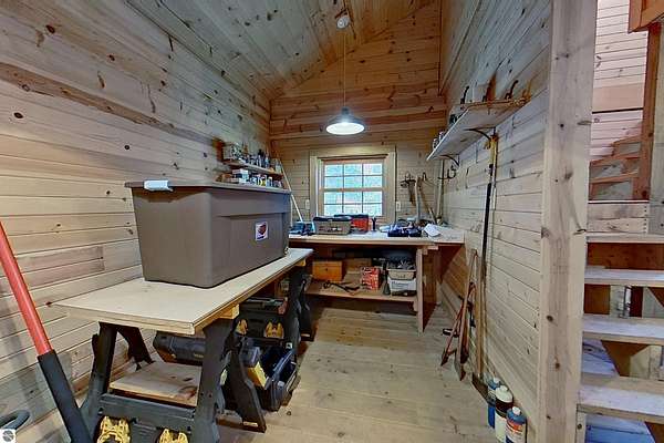 A rare find of nature and neighborhood! 20 acres of tranquility with over 500 feet of Chippewa River frontage AND it's on a private road. Start and end your day in the summer listening to the river from your private screened in porch off the primary bedroom of which also offers a private bathroom and walk in closet. When the summer months of entertaining from your wrap around deck are over, gather with loved ones inside where you have a panoramic view of the river and warmth of the fireplace. Spacious eat-in kitchen offers high end appliances, island cooktop, and Corian counters. Main floor also offers a formal dining room, a second full bath and a second bedroom. Upper-level features 2 spacious bedrooms, guest bath with soaking tub and attic space for storage. A whole house generator gives peace of mind. Additional building with knotty pine interior walls features a workshop, storage, and has a full loft for flex space. This property is truly one of a kind and offers so much opportunity!