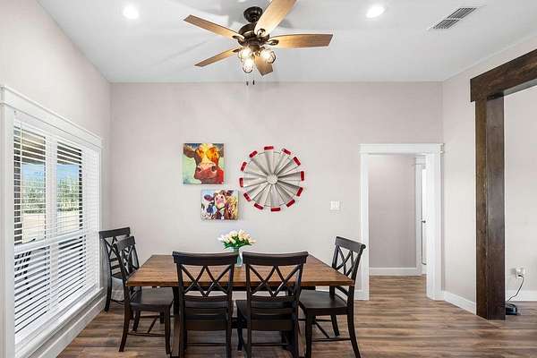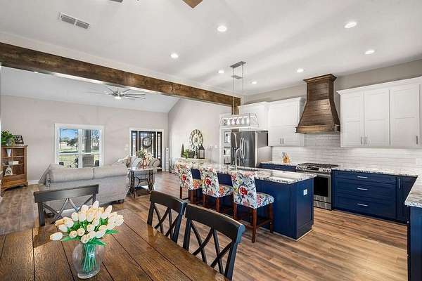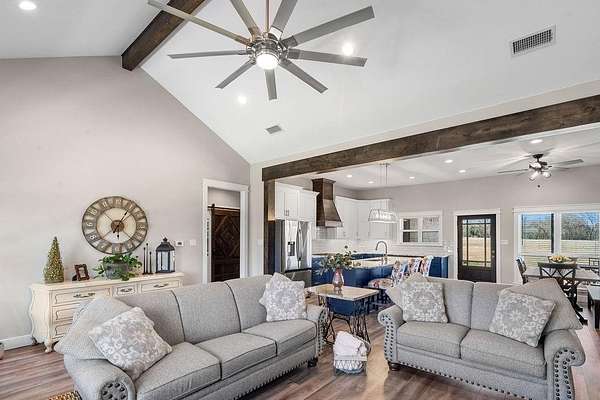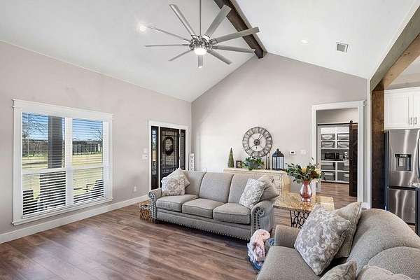 Discover your personal paradise in the heart of Texas with this exceptional farm and ranch property, set on 11 tranquil acres. Perfectly blending rustic charm with modern luxury, this custom-built home features three bedrooms, two bathrooms, and a spacious two-car garage. Located on a peaceful country road, enjoy unparalleled tranquility and stunning panoramic countryside views.Step into a welcoming open-concept space where contemporary upgrades meet timeless design. The centerpiece is the expansive kitchen, ideal for everyday meals and entertaining, with a generous island, granite countertops, a farmhouse sink, and a state-of-the-art gas range with an integrated griddle. Ample cabinet storage and a walk-in pantry with shelving and a desk area cater to all your culinary needs. Large windows in the dining area provide picturesque views. The home's split floor plan offers privacy, with the primary suite as a sanctuary featuring an ensuite bathroom, dual sinks, a large walk-in shower, and a closet with built-ins conveniently connected to the laundry room. Additional features include a built-in cubby for organization and a strategically placed half bath for guests.The expansive outdoor space, partially fenced, is ideal for cattle or livestock and includes a tranquil pond. Perfect for gardening, raising chickens, 4H animal projects, or constructing a workshop. The property is generator-wired and situated in the growing Como-Pickton school district. Embrace a lifestyle where modern comfort meets rustic charm, making this not just a house but your own haven—a slice of paradise amidst the modern world.