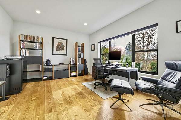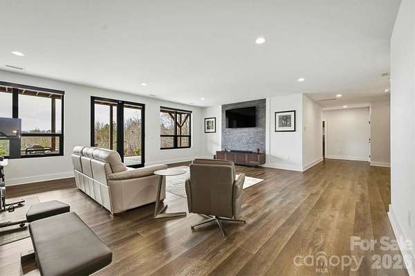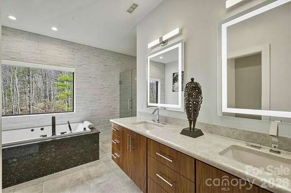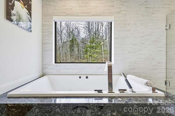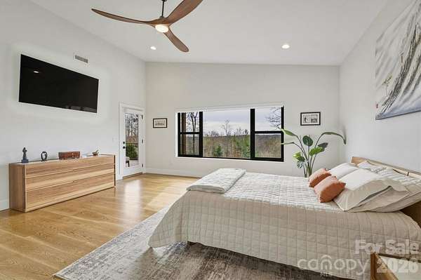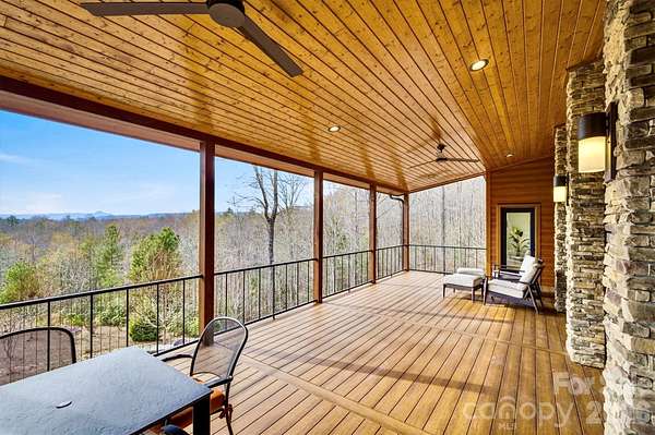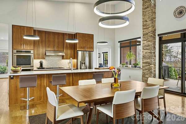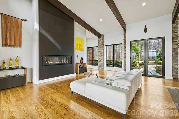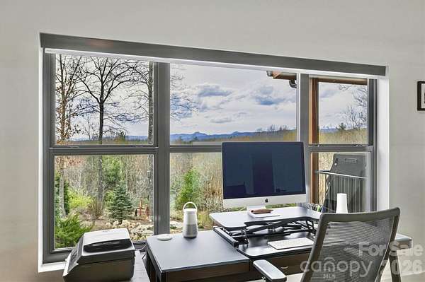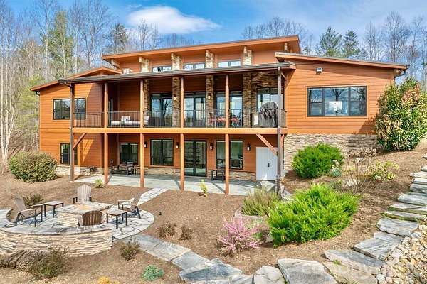 Contemporary, mid-century modern, luxury home with a spectacular view of Table Rock and other Blue Ridge Mountain peaks. This one-of-a-kind custom home is located in The South's premier Outdoor Lifestyle Community, the Coves Mountain River Club. - SUPERIOR WALLS(R) concrete foundation. Minimal maintenance facade of concrete board and stone columns. - WHOLE HOUSE generator, water filtration and softener system, 500 gallon buried propane gas tank - TWO GAS furnaces. Two on-demand tankless propane water heaters. - 8' FRENCH DOORS IN FRONT. Contemporary solid wood interior doors. - MODERN, SCULPTURAL LIGHTING ARTISTICALLY accentuates the refined, contemporary aesthetic - OPEN FLOOR PLAN, resplendent with natural light. - A row of motorized windows spans top of wall in living room, providing ventilation and light. Motorized window shades with magnetic hold-downs to keep in place. - TRUE BEAMED vaulted ceilings in living room. Wood floors. Sleek linear fireplace. - THERMADOR double oven, 5 burner gas stove, under counter microwave - CUSTOM WALNUT cabinetry in kitchen and walk-in pantry. - COMPOSITE decking on the back porch. Remote controlled ceiling fans cool the back porch and outdoor kitchen - PASS-THROUGH window from the kitchen to the back-porch outdoor kitchen, which has granite counters and built in BBQ with dedicated gas line. - LUXURY underfoot in the garage: MetalFX glazed epoxy concrete floor - SLEEK stylish, powder room with gleaming black tile wall and modern lighted vanity mirror. - HIGHLY FUNCTIONAL, organized, laundry room with built-in cabinetry, ample counter space, utility sink, storage closet. - BUILT-IN bench and cabinets create the ideal drop zone, leaving clutter at the door. - LARGE PRIMARY Bedroom Suite with incredible Table Rock view. Luxurious spa bath: large jacuzzi tub, walk-in shower with built-in bench and waterfall shower head. Bidet toilet. Lighted contemporary mirrors. - SPARE ROOM, used as office, has closet; could be 4th BR. - TWO BEDROOMS, full bathroom, and large great room on basement level. - FINISHED walk-out basement opens to a beautiful slate patio and a stone path to - BACKYARD PARADISE - extensive, opulent landscaping with a custom stone raised fire pit transforms the backyard into a luxurious, year-round functional living space -. OUTDOOR GARDENS A fenced raised garden beds with gate, strawberries, rosemary, blueberry bushes, fig trees, red bud trees, roses, double azaleas, peonies. - XL BASEMENT storage room with interior and exterior entry; double doors for UTV storage and single door exits to back yard gardens. - THE COVES MOUNTAIN RIVER CLUB is a 3,200 acre gated community with 5 miles of Johns River on site to kayak, fish, and pan for gold. The crown jewel of The Coves is a post + beam clubhouse, on the highest peak, with 360 degrees views of Grandfather Mountain, Hawks Bill, Table Rock, and Brown Mtn (look for the mysterious Brown Mountain Lights!). Premium stargazing is ensured by dark sky community protocols (no up lighting etc). Amenities include a saline pool, full kitchen, lending library, fitness center, locker rooms, pool table loft, wrap-around porches and viewing decks to take in spectacular views and sunsets. Cultivate your private garden plot in the community garden and join your neighbors to harvest grapes in the community vineyard. Hike, bike, or UTV on the community trail system. 2 Equestrian Centers and a thriving Equestrian Club. Join one of the 30+ clubs. Dog Park. Pickle-ball courts, picnic pavilions, river access points. Socials, trips, clubs, yoga. 1.25 hour to Charlotte or Asheville. Minutes to Lenoir, Blowing Rock, Morganton, and the Blue Ridge Parkway. 500,000 acre Pisgah National Forest and Wilson Creek Wild and Scenic River Area are just outside the gates.