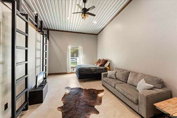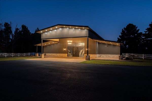Luxury Barndominium on 127 Acres with Guest House, Horse Barn and Exceptional Hunting! Nestled on 127 acres, this exceptional luxury barndominium combines the best of country living with sophisticated, modern amenities. With 3 spacious bedrooms and 3 full bathrooms, this home is designed for both comfort and style, offering an open-concept floor plan with high-end finishes, soaring ceilings, and large windows that flood the space with natural light. Every detail, from the sleek kitchen with top-tier appliances to the spa-like bathroom, speaks to the quality and craftsmanship of this one-of-a-kind property. The heart of the home is its expansive living area, perfect for entertaining or relaxing, featuring a cozy fireplace and plenty of room for family gatherings. The gourmet kitchen is equipped with state-of-the-art appliances, a large island, and custom cabinetry, while the adjoining dining area is perfect for hosting guests. The master suite is located upstairs and is a true retreat, complete with a private en-suite bathroom and views of the stunning property. Step outside onto the covered porch and enjoy sweeping views of your wooded and open property, ideal for outdoor activities and enjoying nature's beauty. The property includes a full horse barn with ample space for your animals, as well as a 3 bedroom, 2 bathroom guest house for visiting friends or family. For those with hobbies or needs for extra storage, this property features an impressive collection of shops and storage spaces, perfect for anything from workshop projects to storing outdoor equipment. With excellent deer and duck hunting opportunities, it's a hunter's paradise, offering a mix of timberland and open fields ideal for wildlife. Whether you're looking for a peaceful retreat, a weekend getaway, a hunting haven, or a place to raise horses or cattle, this home has it all, combining the rustic charm of a country estate with the luxury and convenience of modern living.