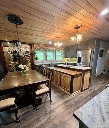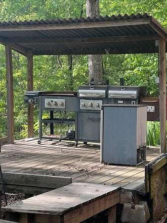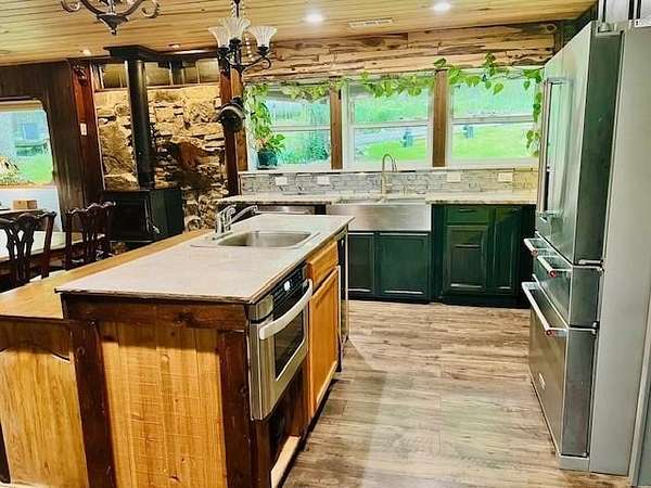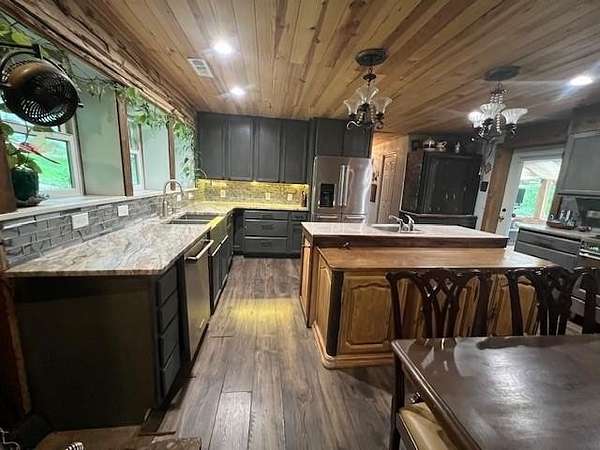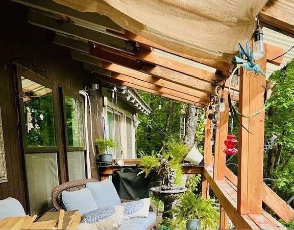 The perfect NW Ar. serene nature getaway can be your home away from home nestled in the woods. Sitting on 2.98 Acres, the home is surrounded by beautiful flowers & natural beauty. The home’s stunning kitchen & bath, were recently remodeled. Equipped with a Verona 6 burner gas range w double oven, full size refrig, plus a beverage refrig, a drawer microwave built in the island. The surfaces are lined with granite, tile and wood creating the perfect kitchen w buffet for the adjacent fireside dining area. With 3 fireplaces, a wood stove, native stone hearth, central hvac, 3 split units & a generator, you are set for comfort all year long. Master BR/Bath enjoy a huge walk in shower, double vanity sink. Utility room, office nook and walk in pantry also. The spacious lower level sunroom with fireplace has a shelf lined wall & opens to the back deck outdoor cooking/entertainment. 3 storage buildings function as you like, along with a 2 car carport and shed.