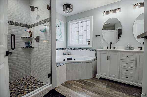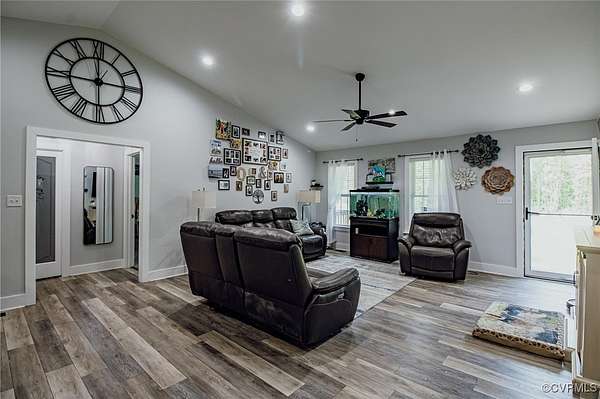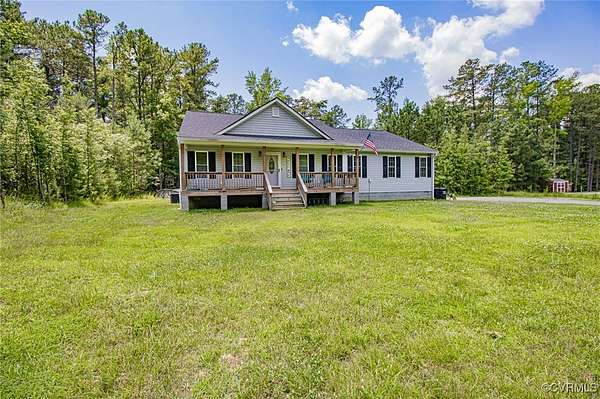 Over 5 Acres in Prince George County and only 3 years young! This custom built, split Rancher has a gorgeous custom Kitchen with Maple Cabinets, soft-close drawers, black-stainless appliances, a quartz-topped Island, and textured-leather granite countertops. The Kitchen flows seamlessly into the Living area with LVP flooring. Two bedrooms and a bath on one side, and the Primary bedroom with full en suite on the other. The front country porch is 32 x 6 and the back deck is 32 x 8. Minutes from I-295, Route 460, and Fort Gregg-Adams (Fort Lee). Come add your personal touches and make this house your home!