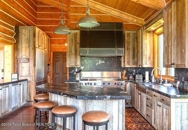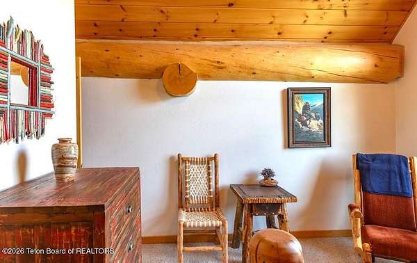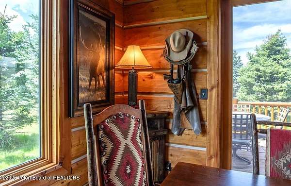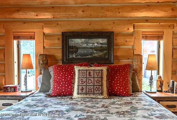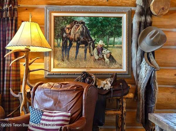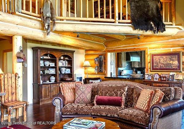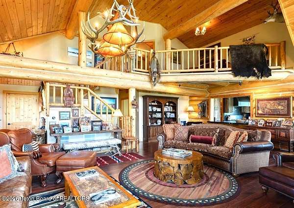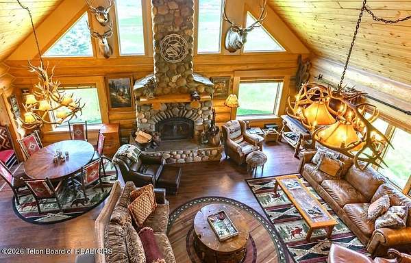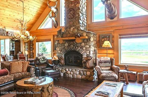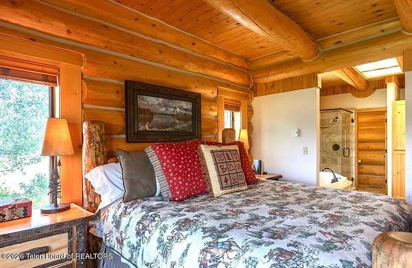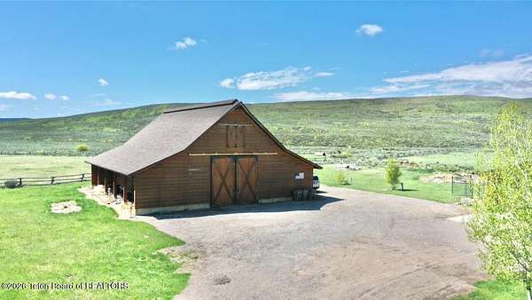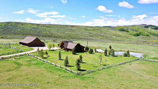 Shooting Star Ranch: A Recreational Paradise in Bondurant. Discover Shooting Star Ranch, a stunning 35-acre retreat, located in the rural community of Bondurant, just 40 minutes' drive through the gorgeous Hoback River Canyon to Jackson Hole. This property offers an idyllic escape and playground for all your recreational pursuits. Ride, hike, or snow machine directly from your back gate into the Bridger Teton National Forest, which offers millions of acres for exploration and adventure. Fish the nearby Hoback River or play in the quarter-acre pond. The ranch features a hand-crafted log home boasting 3 bedrooms, 3.5 baths, a striking river rock fireplace, and vaulted ceilings that add to the home's rustic elegance. Additional amenities include a detached two-car garage with a large sleeping loft and a spacious 2,400 square foot barn, ideal for horses, storing recreational toys or hosting large gatherings. The ranch's private, picturesque setting offers breathtaking views of the Gros Ventre Mountains, making it a true sanctuary for nature lovers. Experience the perfect blend of seclusion and convenience at Shooting Star Ranch - your gateway to the natural beauty and outdoor adventures of Bondurant.