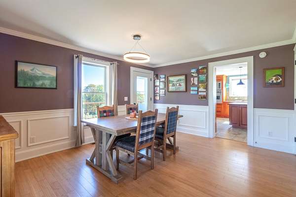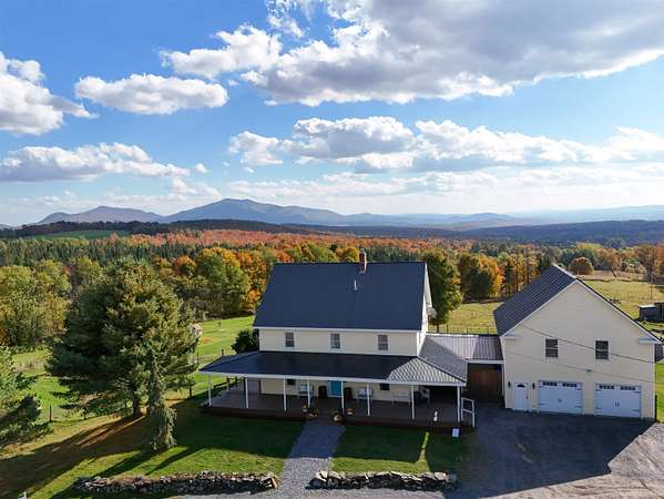 Graceful 27.3-acre farm with stunning Burke Mountain views offers a rare combination of beauty, functionality, and sustainability. The land features open fields, pastures, wooded areas, a stream, and a pond, all thoughtfully cultivated with years of sustainable farming practices. Orchards boast 40+ fruit trees, and extensive berry gardens, a raspberry patch, native berry orchard, 28+ raised beds, and 4 gardens. Additional highlights include a 100-tap mature sugarbush, native plantings, lilacs, hoop house, greenhouse, and multiple barns for animals, equipment, and storage. The impressive 5,000+- sq. ft. residence offers 5 bedrooms, 5 baths, and views in every window. A wraparound new Trex deck, walkout basement, and oversized 2-car garage enhance convenience. Inside, wood and tile floors flow throughout, with wide king plank flooring upstairs. The main level features an open kitchen/dining/living layout with granite counters, bay windows framing stunning southern mountain views, laundry, and 2 baths. The second level hosts the primary suite with tiled shower and spa tub overlooking Burke Mountain, plus 3 more bedrooms and full bath. A third-level bonus space and large family room over the garage provide versatility. A root cellar, canning kitchen, and walk-in basement complete the home. Located just 12 minutes to Burke Mountain, 10 minutes to Lake Willoughby, and minutes to Kingdom Trails, this remarkable property offers an unmatched lifestyle in Vermont's Northeast Kingdom.