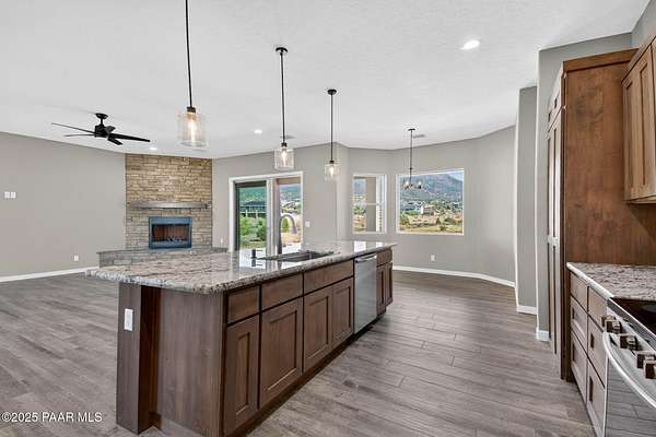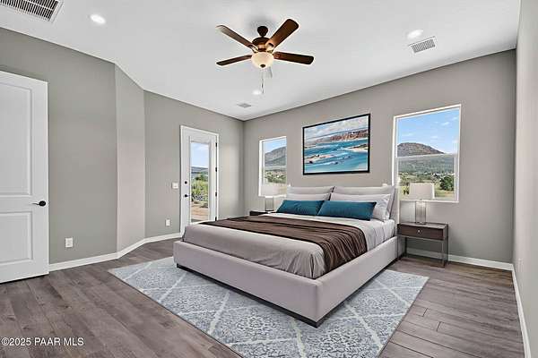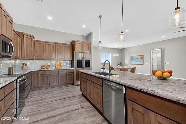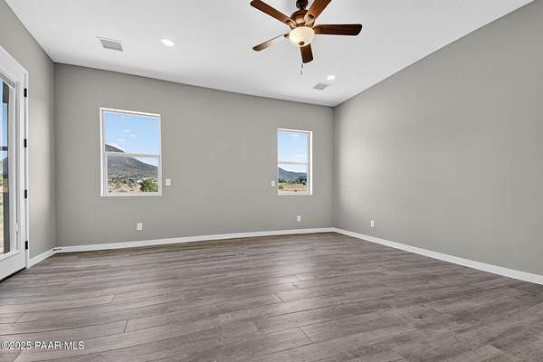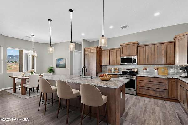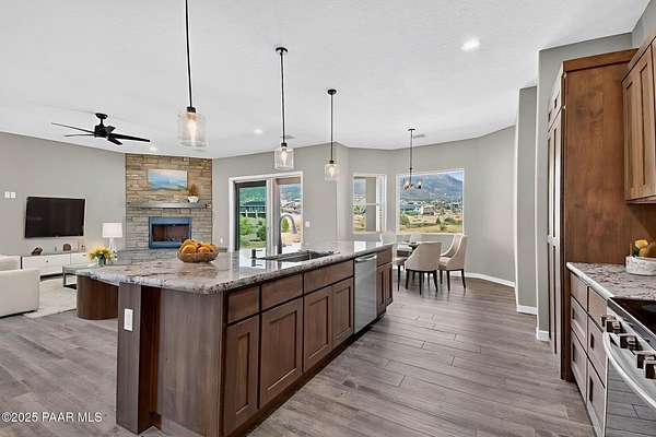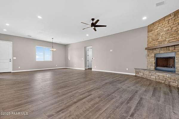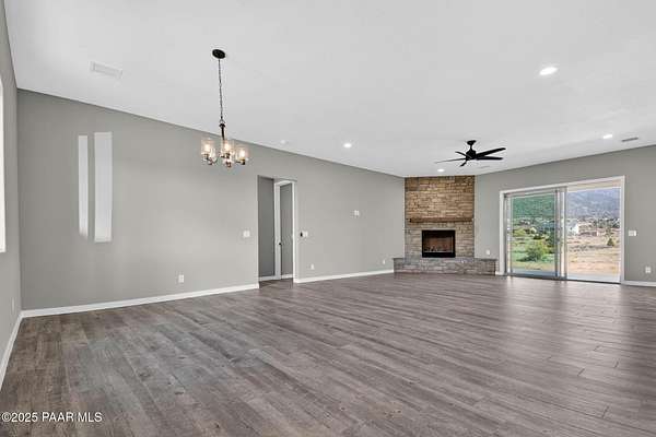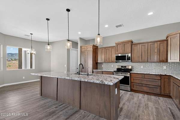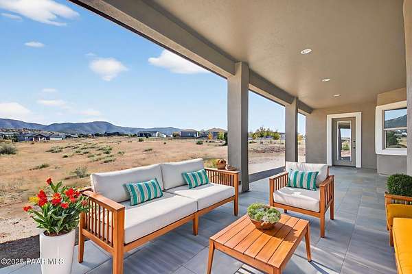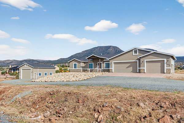 Brand new single level construction, with detached drive-through RV Garage. This home has spectacular views and is located in the desirable Legend Hills community. This is a nicely upgraded home with SS appliances, 240V in Garage, side-mounted garage door openers to allow room for a car lift. The house is tiled throughout. MBR has access door to patio which features spectacular views of Mingus mountain. The home sits on 2ac, offers a 48x24 RV garage with 2 16ft doors. Electricity is in the RV garage. Walk-in closet and walk-in pantry are very spacious. Come and see this beautiful home and enjoy living in ''Casa Serena''.