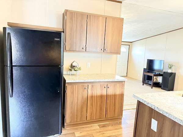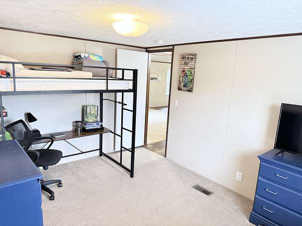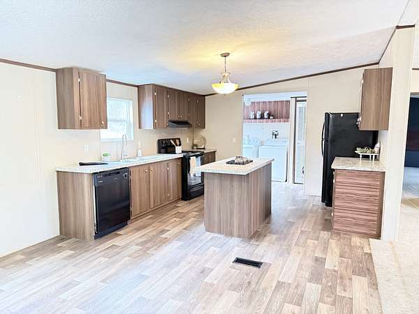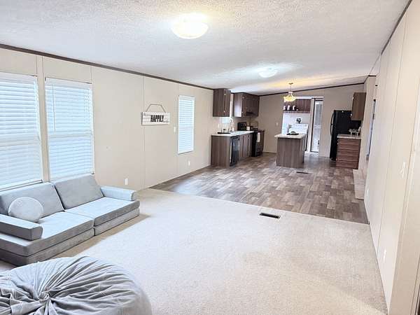 Spacious 4-bedroom, 2-bath manufactured home on a permanent foundation, situated on a 1.5-acre lot. The home features a large living room plus a bonus room/den, offering flexible space for entertaining, a home office, or additional living area. Enjoy the benefit of no city taxes while being conveniently close to town, schools, churches, and shopping. Kitchen with an Island and appliances remain. Two outbuildings. Great setup for a mechanic or hobbyist needing outdoor space for projects. Lots of parking. There is a well on the property but the home is connected to city water. This Sale is to settle an Estate--property is being sold AS-IS.