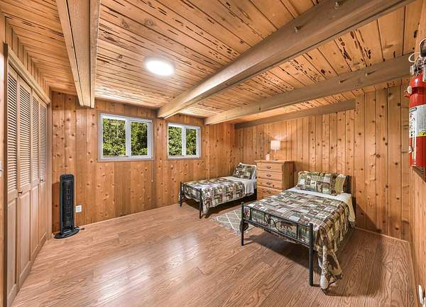 Rare opportunity to own a truly remarkable property. This beautiful 4-bedroom, 2.5-bath home on a large 5.21-acre in-city lot offers space, income potential,and endless possibilities. With 3,430 sq ft, it's currently a successful Airbnb upstairs while the owner resides in the finished basement. A long private driveway provides peace and quiet, yet you're just minutes from I-5, shopping, hospitals, and schools. Featuring a classic knotty pine interior, open lawn, and multi-use outbuilding, it's ideal as a private residence, hobby farm, or future development site-offering rustic charm with city convenience. With ample space and endless possibilities, it's the perfect blank canvas to build, grow, or simply escape.