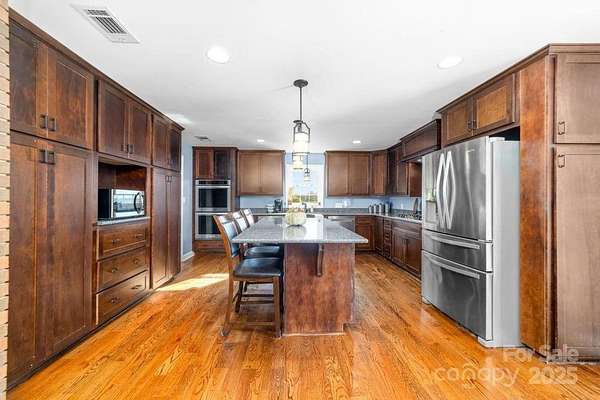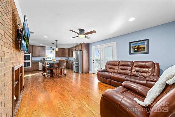 Meticulously maintained, this stunning split foyer home is tucked away on 1.64 acres of open, level land in desirable North Iredell County. Featuring over 2700 ft.2 of beautifully finished living space, this home combines classic brick charm with modern updates throughout. The main level welcomes you with gleaming hardwood floors, custom iron, stair railing, and an open concept, living area flooded with natural light. The spacious kitchen is a true showstopper-complete with custom cabinetry, granite countertops, stainless steel appliances, a center Island, and double ovens as well as two brand new dishwashers - perfect for entertaining. The upper level family room flows effortlessly into the kitchen and dining areas, offering access to a rear deck overlooking the serene backyard. The lower level offers a large recreation room, additional bedroom, full bath, and generous utility space - ideal for guest, multigenerational living or a home office set up. Enjoy the quiet privacy of the countryside with the convenience of easy access to I 77 and I 40. The property includes a circular driveway, two car garage, beautiful landscaping, and wide open views. Move-in ready this home features a perfect blend of comfort, quality, and rural elegance.