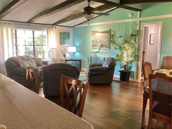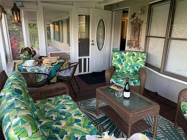 The house has been extensively updated and boasts new roof, septic system, porches, A/C system and hot water heater. The thoughtfully remodeled kitchen features modern cabinets with stainless hardware, extensive tiled back splash, stainless appliances and generous quartz counter tops. Hardwood flooring runs throughout the open-plan kitchen, lounge and dining areas providing a cohesive feel to the area. The master bedroom has a luxurious en-suite bathroom and walk-in closet. Two other generous bedrooms share a second, updated bathroom. Finally, there is a separate den/study. Enjoy the back porch screened sunroom with its views over open fields to the south, a hot tub and the landscaped, up-lit garden. Large live oaks provide welcome shade in the summer.