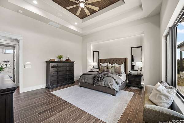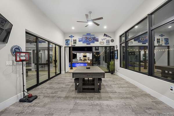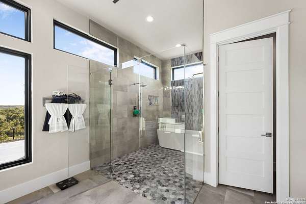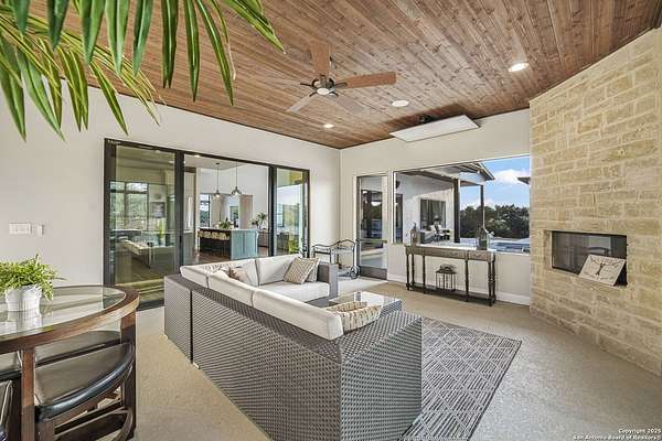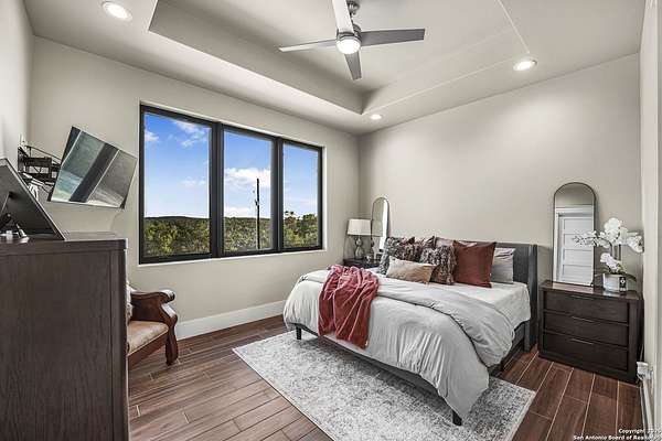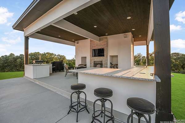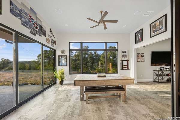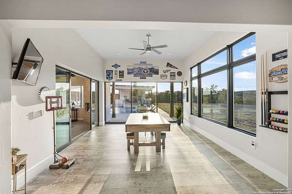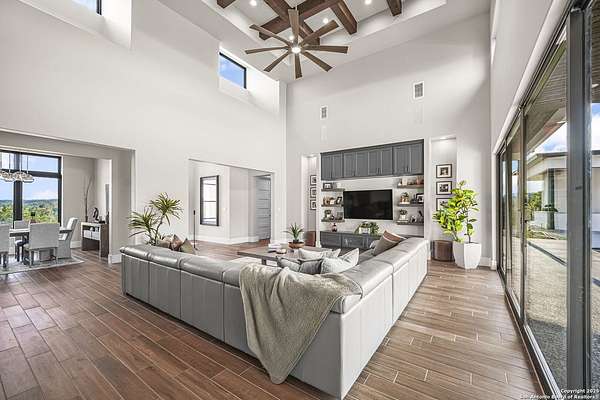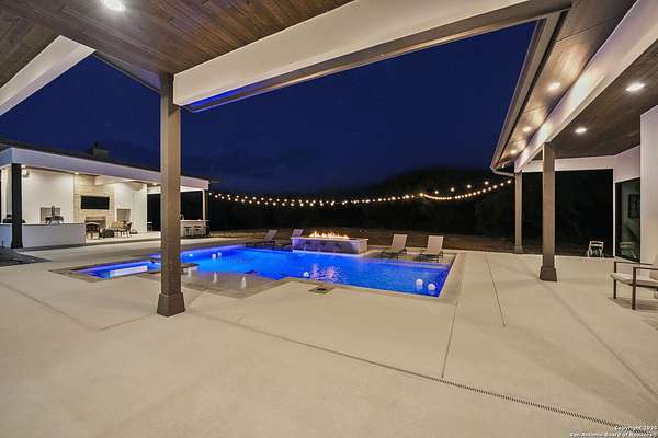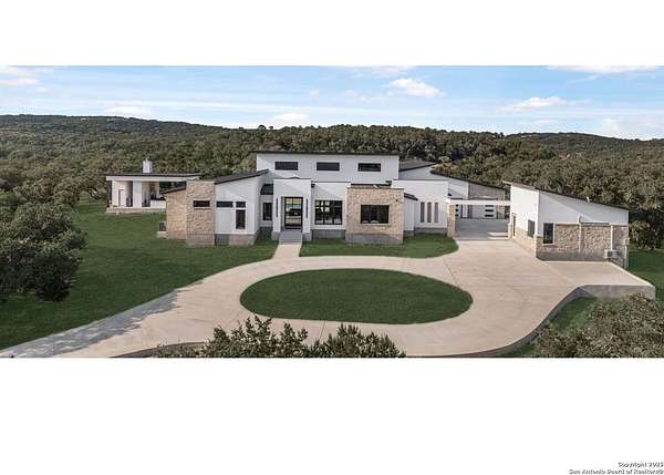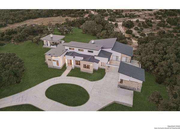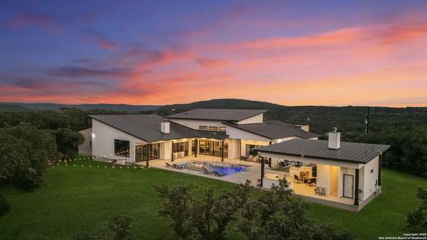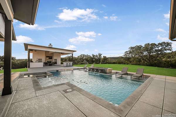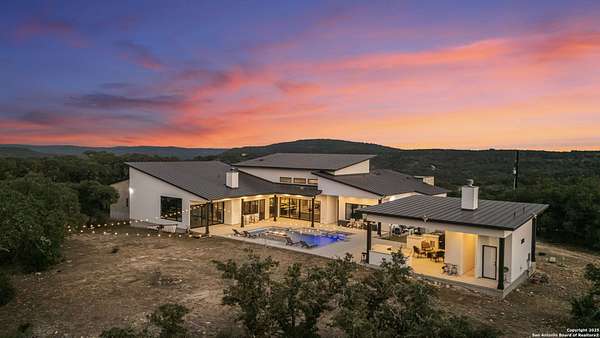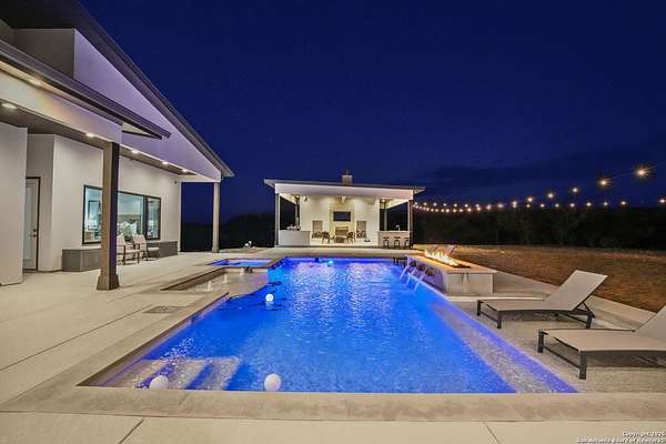 Nestled on an expansive 10 acres of prime real estate is this FULLY FURNISHED one-story contemporary estate offering the best of all worlds...luxury, exclusivity, and value. As you approach the property, you'll be greeted by a "true" private entryway to your home, even though it's part of an even larger acreage community comprised of 20-30 acre tracts. This gated entryway leads through a long winding driveway surrounded by trees and shrubs, evoking warm thoughts of country living, but with modern conveniences. Stepping inside this 4,900+ square foot home, you'll be immediately captivated by a 10-foot wrought iron door that opens to an open floor plan that is both welcoming and highly functional. Adjacent to the Texas-sized family room is the chef-inspired kitchen, featuring two oversized islands and state-of-the-art appliances that can accommodate any size gathering. Speaking of gatherings, the 20-foot-wide sliding doors open to a spacious wrap-around patio area complete with a Keith Zars pool and spa, ensuring that your seasonal gatherings are truly memorable. Of course, no pool and patio can be complete without a 900 square foot pavilion, which boasts two additional bathrooms and a shower. Not to be outdone, there's an owner's suite that serves as a private sanctuary. The spa-like bathroom features a sleek built-in bench, dual overhead showerheads and a large soaking tub. The His & Her closets are a must-see in person to fully appreciate the elevated luxury experience. While there are far too many upgrades to mention in this description (we have a limited word count), attached is a list of features that are sure to warrant an in person tour. Whether you're waking up to jaw-dropping amazing views in every room or winding down while relaxing on your private oasis, this home will awaken all your sensory receptors and bring you the great life. Words matter, but seeing is believing.