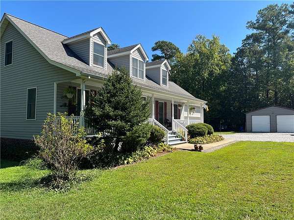 NEW PRICE!!Charming Home and Retreat with 8 Acres of Privacy! Come away from the hustle and bustle of Life. 7.98 +/- Acres with Wooded BufferExtremely Private and Secluded. Close to Water Access. Front Covered Country Porch. Rear Deck with Fenced Back Yard. The Hummingbirds Love it Here! Hardwood Floors. Sunroom with Deck Access, Vaulted Ceiling Entrance with Sky Light . Spacious Primary First Floor Suite. Primary Bathroom includes a jetted tub and separate Shower room. Open Kitchen with Bar and Breakfast Nook to enjoy the views. Country Formal Dining Room. Laundry Room with Cabinetry and lots of Storage. Second Level is open to the vaulted ceiling entrance with an open Loft and sitting area. Two Bedrooms also spacious, share a roomy "Jack and Jill Bathroom". Attached and Detached Garage with Workshop. Storage Shed. Fenced Back Yard with Decks to enjoy Nature. There may be a few Deer for neighbors. The Private Road is included in the survey and owned by Sellers. 2 additional homes on the private drive. More clearing can be done to open up the surrounding acreage.SHOWN BY APPOINTMENT ONLY. NO DRIVEBYS. HOME OCCUPIED. NO TURNAROUND. This home and property is a must see. New Appliances/2 pantries/2 coat closets/Primary Suite 1st Floor/2 Walk In Closets/SunRoom w/French Doors/Window Dormer Storage/ 440 AMP SERVICE wired for Generator Hook up/Large Gravel Drive-Ample Parking! Wake Beach is so close! at the end of Mill Wharf Rd.This is a must-see amazing property!