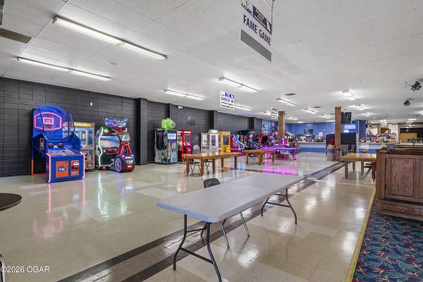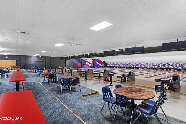 Est $13,002/moWell-established bowling alley located on 4th Street in Joplin. Property features 40 bowling lanes with automatic pin setters, a full-service grill with adjacent game area and snack counter, and a full-service bar. The west side of the building offers a separate-entrance bar area complete with shuffleboard, providing flexible use and strong entertainment appeal. Ideal for continued bowling and entertainment operations or redevelopment with multiple revenue streams.