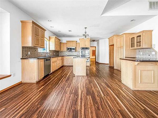 The kitchen is ideally positioned next to the great room, creating a warm, open feel anchored by a beautiful stone fireplace. With ample cabinet and counter space and a gas stove, the kitchen is well-suited for both everyday living and entertaining. The spacious primary suite serves as a relaxing retreat with a walk-in shower and Jacuzzi tub.