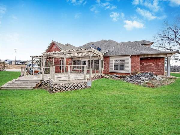 Welcome to 1419 W Royal Oak Rd in Pauls Valley! Where space, comfort, and convenience come together. Just minutes from Walmart and quick access to I-35, this impressive two-story home is set on 8.92 acres, offering peaceful privacy with everyday accessibility. The home features 4 bedrooms, 3.5 bathrooms, multiple flexible living areas, a game room, and a private study complete with built-in desk and storage. Both the study or game room offer the flexibility to be converted into a potential 5th bedroom, ideal for guests or growing needs. Classic wooden plantation shutters are featured throughout, adding timeless character. The kitchen is ideally positioned next to the great room, creating a warm, open feel anchored by a beautiful stone fireplace. With ample cabinet and counter space and a gas stove, the kitchen is well-suited for both everyday living and entertaining. The spacious primary suite serves as a relaxing retreat with a walk-in shower and Jacuzzi tub. Walking outside enjoy a wrap-around porch, sunroom, and a wooden deck with a pergola all ideal for entertaining or taking in the surrounding views. A 30x60 shop completes the property, offering generous space for storage, projects, or workspace needs.