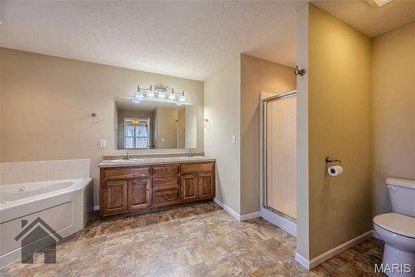 - Custom Cabinetry, Double Vanity, Kitchen/Dining Room Combo, Separate Shower, Walk-In Closet(s)