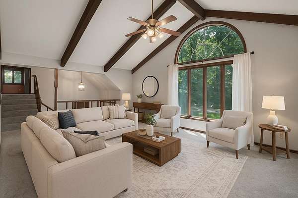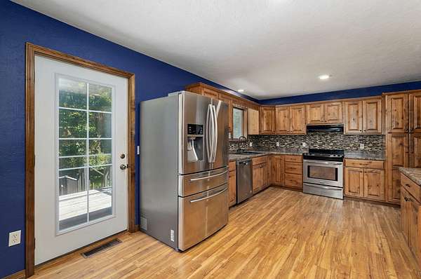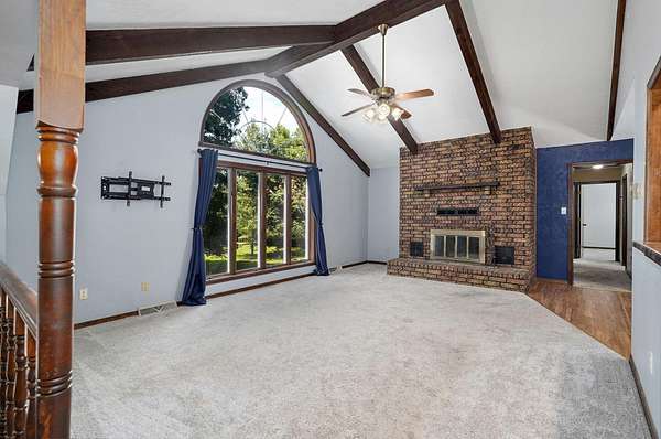 Welcome to your private retreat! This spacious 4 bedroom, 2.5 bathroom home sits on 2 peaceful acres, offering the perfect blend of comfort and seclusion. Inside, you'll find an updated kitchen with modern finishes, ideal for both everyday living and entertaining. A large picture window in the living room brings in natural light and views of mature trees, creating a peaceful ambiance, while the large deck off the back is perfect for gatherings, grilling, or simply enjoying the outdoors. A rare find with space, style, and privacy all in one! A partially finished basement with a second living room and cozy fireplace, ideal for movie nights or extra living space. A rare opportunity to enjoy space, style, and serenity all in one!