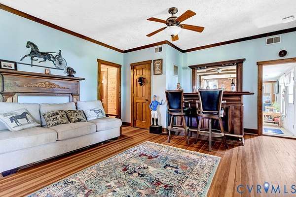 If you love horses or simply want the quiet country life, this picturesque small farm in Montpelier is for you. The location offers a rare blend of rural charm with convenient access to Ashland, Short Pump and Goochland. This 4.7-acre pastoral gem was part of Mill Creek Farm circa 1850, and is situated in a private enclave of dozens of acres. For your horses, there are two fenced pastures with abundant grass, a fenced paddock with run-in shed and a tack room. The paddock has water and electricity and a nearby riding ring. The recently renovated 2,650 sq. ft. farmhouse boasts two large porches where you can watch spectacular sunsets, deer strolling through the fields, and herons flying over a nearby pond. Bluebirds, butterflies, goldfinches and hummingbirds visit the wildflower garden. Inside the house, you'll find a bright, spacious kitchen and dining area with beadboard paneling, granite countertops, farmhouse sink, new flooring, stainless steel appliances and more. The enormous living room boasts a white brick fireplace with woodstove insert, framed by gleaming wood paneling. An intricately crafted walnut bar with matching framed mirror provides an elevated aura of hospitality for your guests. The home also features high ceilings, original heart pine staircase and heart pine floors. There are four bedrooms with one being used as an office, plenty of closet space, and three and a half baths. A new 25x30ft. garage offers plenty of space for a workshop, storage or other needs. Additional upgrades include new Pella windows and a whole house generator with propane tank. Two outbuildings can be used for storage or even an art studio. A new 65x65 ft. pen in the backyard offers plenty of play space for pets and kids. Gardeners will have abundant plots for growing vegetables, herbs and flowers. With all the amenities and ambiance of the farm comes the extra benefit of having very nice neighbors. This listing is an exceptional opportunity to own a "little piece of Heaven" in Hanover.