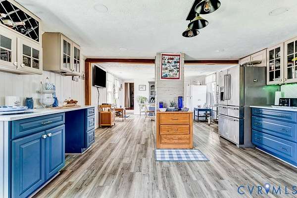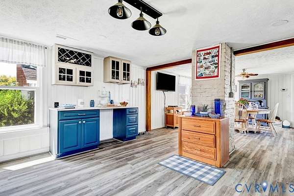 - Beamed Ceilings, Ceiling Fans, Central Vacuum, Dining Area, Double Vanity, Eat In Kitchen, Pantry, Recessed Lighting, Track Lighting