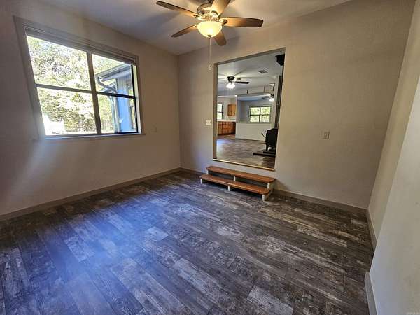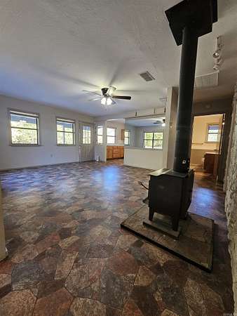 Looking for your peace? Here it is. Step into this serene 14 (+-) acres with the home nestled between 2 heavily treed hills and a year-round creek through the property. Plenty of fish in the pond (including a catfish named Bubba), a fenced garden area, 24x36 barn or barndo (framed to home specs, 230v), generator transfer switch 200 amp, fruit trees: pear, plum, peach along with muscadines, blackberries, huckleberries, and so much wildlife. Partially fenced to keep the fur babies in and plenty of room for horses in the 2 adjoining fields. The home is on city water BUT there is a well for watering the garden, grass and fruit trees. The roof and gutters were replaced 8/2025, water heater replaced in 2024. Lots of cabinet space in the kitchen, bathroom and laundry, wood stove is an added feature, bedrooms are spacious and the 3rd bedroom has 2 entrances from outside. The property is right down the road from the west entrance to the Wolf Pen Gap trail system and it is close to town but the perfect distance away to enjoy nature.