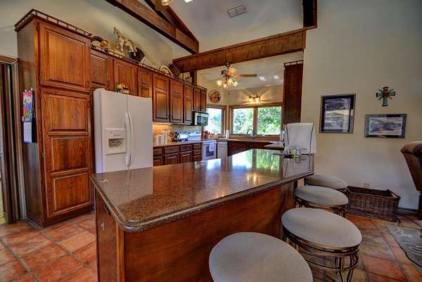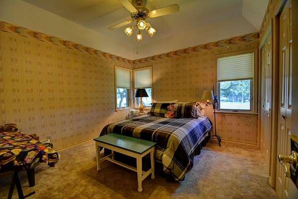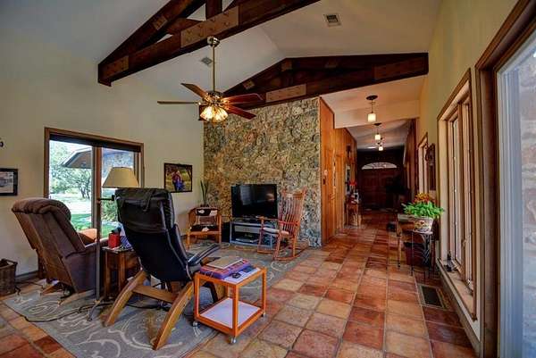 Absolutely stunning residence on 5.61 acres in the rustic & private development of Bear Paw Ranch. Over 48 Pella windows, rich wood, native stone, high ceilings, Saltillo tile, broad hallways & 1000 sq/ft covered, wrap-around porch characterize the design & style of the home. Impressive great room w/views to back 1000 sq/ft courtyard w/fountain, 15' beams & lrg wood burning FP. Open, spacious chef's kitchen; stove negotiable. U-shaped split bedroom floorplan is comprised of 2 living areas, 2 dining areas, 3 bedrooms, 3 full bathrooms, an office, a drive-through double door garage & a separate utility room. The lavish primary suite features a second fireplace, sitting area, walk-in closet & dual bathrooms. This is a one-of-a-kind property you won't want to miss. Call today to schedule a showing.