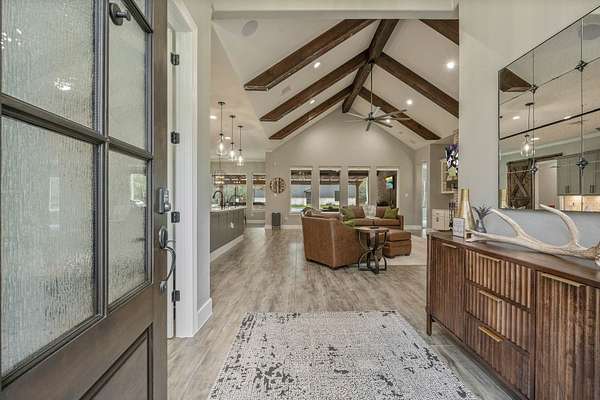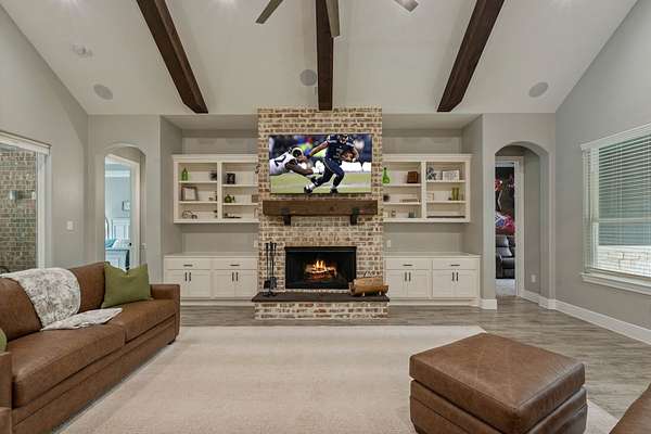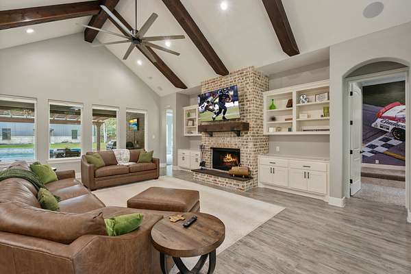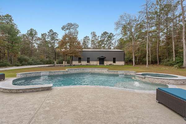 Gorgeous Custom home now available in the highly acclaimed community Texas Grand Ranch! This fantastic home sits in a quiet cul-de-sac on 2.6 plus acres and is loaded with mature trees. Every detail for this dream home was carefully selected and quality crafted. Custom features include stunning upgraded tile floors, custom office built-ins, spa inspired master bath w/oversized walk-in shower & tub tiled accent wall, gourmet kitchen, GE appliances, Quartz counter-tops, don't miss that walk-in pantry! Cozy fireplace w/custom mantle, sprinkler system, security cameras & whole house generator and much more!!! Entertain on your covered back patio with your outdoor kitchen and peaceful view w/pool & spa, like being on vacation at your own home! Fully fenced & electric gate for privacy. This home is a must see!!! Huge brand new work shop for all your toys! NO MUD, low taxes. Community is surrounded by the National Forest & State Forest, all the outdoor activities you think about minutes away.