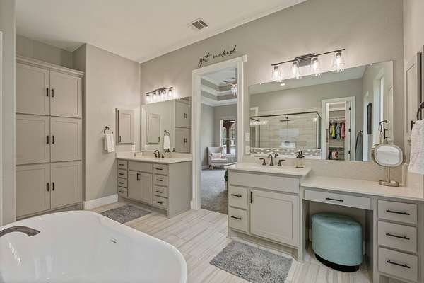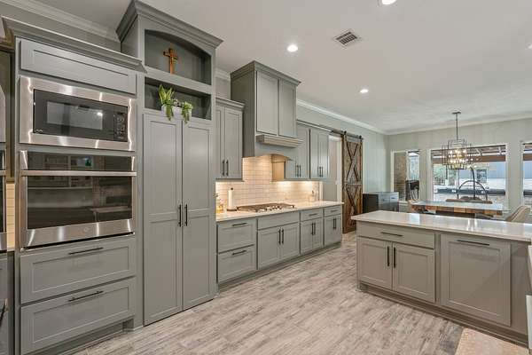 - Bath in Primary Bedroom, Bidet, Ceiling Fans, Double Vanity, Fireplace, High Ceilings, Kitchen Family Room Combo, Kitchen Island, Pantry, Programmable Thermostat, Quartz Counters, Separate Shower, Soaking Tub, Walk in Pantry