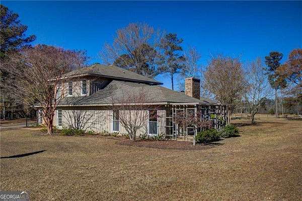 The transformation is complete! Come see these exciting renovations, featuring all-new flooring, updated bathrooms, an improved kitchen layout, and new fixtures throughout. This beautiful, tranquil hobby farm is located just one hour from the Atlanta Airport. Originally designed for horses, the property sits on 26 acres of pasture and woods with a year-round stream supporting local wildlife like deer and turkey. The land features several outbuildings, including a pole barn, tractor/tack barn, and a spacious 16x20 storage barn, plus a charming treehouse. The main house is surrounded by mature trees, including Japanese maples, which beautifully contrast the native hardwoods and pines. Inside, the home offers endless possibilities with a versatile layout: four bedrooms and two baths upstairs, plus two additional bedrooms and baths on the main level, including the primary suite. A bonus room serves perfectly as a home office. The kitchen boasts new stainless steel appliances and opens to a breakfast room, flowing into a generous formal dining area, cozy living room, expansive great room, and bright sunroom. Outside, enjoy the gazebo and patio for al fresco dining. The property includes a 2-car carport and ample guest parking. Key updates include three HVAC systems, a new septic tank/drain field, and a newer roof. (Note: Recording devices are active; please do not drive on the property without approval from the listing agent)