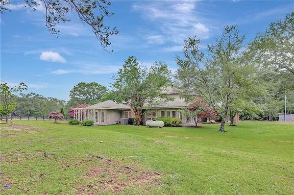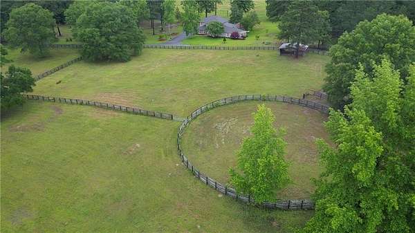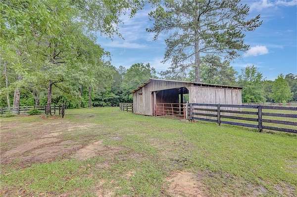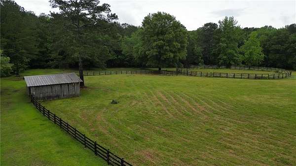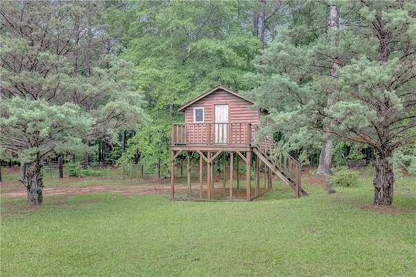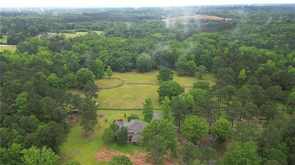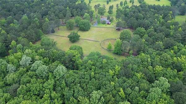 Renovations in progress - updates coming soon to see the exciting changes which will include all new flooring, updated bathrooms, updated kitchen layout and new fixtures and hardware throughout. Beautiful and truly tranquil 'hobby farm' just one hour from the Atlanta Airport. Originally designed for horses, this property sits on 26 acres of pasture and woods with a year round stream that supports local wildlife such as deer and turkey. The land has several structures from pole barn, to tractor tack barn and the largest a 16 x 20 storage barn. There is also a standing 'treehouse' structure. The main house is surrounded with beautiful trees, including Japanese maples, offering a contrast to the hardwoods and pines on the land.The primary house structure offers endless possibilities. It has four bedroom and two baths upstairs. Another two bedrooms and baths on the main including the primary suite. There is a bonus office room as well. The kitchen has new stainless steel appliances and opens to the breakfast room. There is very generous formal dining, a cozy living room, a larger family/great room and a sunroom. Outside there is a gazebo area and patio for outside dining. In addition to ample parking there is a 2 car carport. The home has three HVAC systems, a new septic tank and drain field and a newer roof. Recording devices are active and prior permission from listing agent is required.