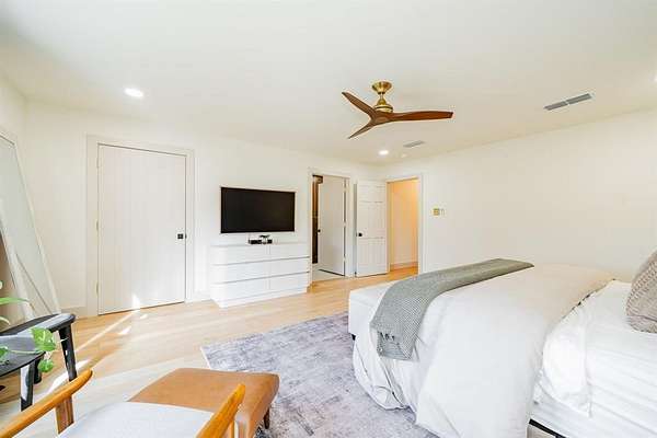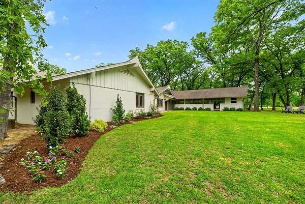 Fully renovated 4-bedroom, 3-bath ranch on Cedar Lane, privately nestled beneath mature post oaks on nearly 2 cleared and manicured acres. Thoughtfully redesigned, this home pairs timeless architectural character with elevated modern finishes throughout. The kitchen is anchored by an oversized island with marble countertops, custom cabinetry, and premium Fisher & Paykel appliances. Sawyer Mason engineered hardwood floors flow throughout the home, while the main living room features a vaulted ceiling with exposed beam detail. The primary suite features a spacious shower with Kohler fixtures and a double vanity with Taj Mahal quartzite. One guest bath features a deep soaking tub with marble tile, while handmade Moroccan zellige tile adds a distinctive finish in the secondary baths. A stone patio extends from the main living areas and is surrounded by mature landscaping and a peaceful natural setting. A rare offering where timeless character, elevated finishes, and a remarkable setting come together. Agent is also homeowner.