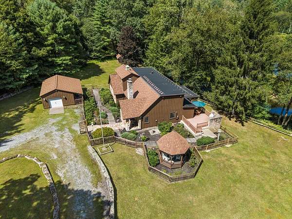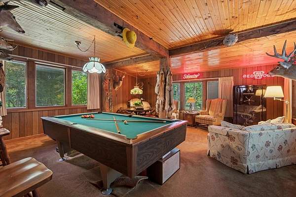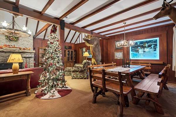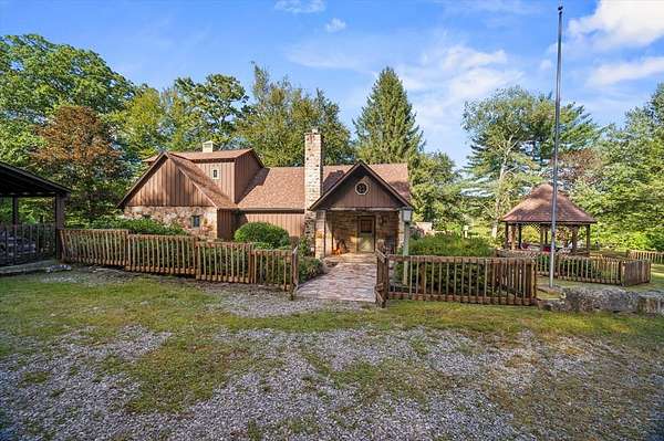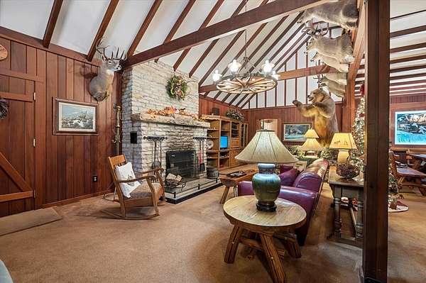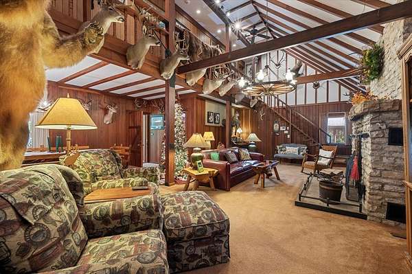 A true Clarion River gem--this historic 5BR, 2BA lodge sits on 9+ wooded acres with 900'+ of river frontage, bordered on two sides by Cook Forest State Park. Originally built by the Shawmut Railroad owner and later owned by a Burger King tycoon, it blends history with retreat-style living. Inside, cathedral ceilings crafted from Shawmut redwood water tanks and a massive 3' stone fireplace anchor the welcoming living room. Entertain in the billiard room, enjoy the retro kitchen with original appliances, or step onto the expansive composite deck with a built-in Jennair natural gas grill--all overlooking breathtaking river views. The property also features three ponds, main level bedroom deck, an outside gazebo, 2 garages, a gated entrance, and 24/7 surveillance for privacy. Ideal as a private residence, corporate lodge, or short-term rental with room to expand, this one-of-a-kind estate is where history, nature, and opportunity meet. Qualified buyers welcome to make an appointment.