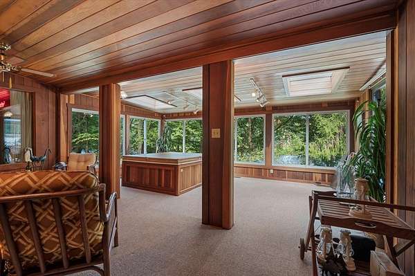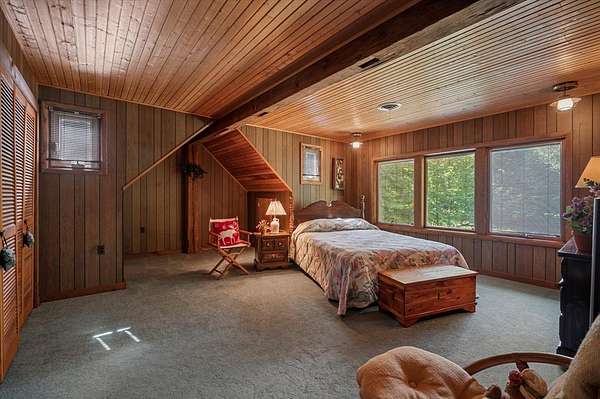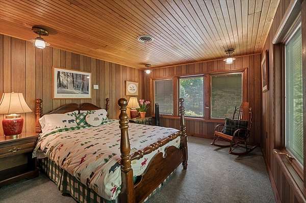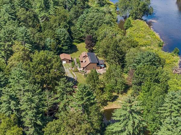 - Borders Public Land, Electric-Circuit Break-200 Amp, High Speed Internet, Main Level Bedroom, Riverfront, Skylights, Wood Burn Fireplace