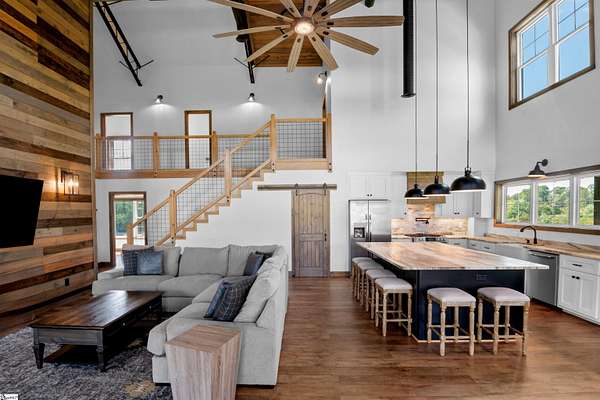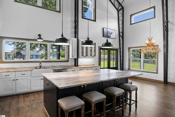 Charming Barndo Retreat on 3.5 Acres in Easley, SC Welcome to your dream oasis! This rare and captivating Barndo find, nestled in the heart of Easley, SC, offers a unique blend of rustic charm and modern luxury, set on an expansive 3.5 acres of pristine land. Don't miss this incredible opportunity to own a piece of paradise just minutes from downtown Easley, Greenville, Clemson, Liberty, and convenient access to Hwy 123 and I-85. Property Highlights: - Spacious and Inviting Layout: As you step inside, be greeted by an impressive open-concept living area featuring soaring 28-foot ceilings that create a sense of grandeur. The living room, dining area, and kitchen flow seamlessly, making it perfect for entertaining family and friends. - Chef's Dream Kitchen: The heart of this home is undoubtedly the gourmet kitchen, complete with a large island for meal prep and casual dining. Enjoy ample storage with custom-made cabinets, a built-in microwave drawer, and a generous pantry to keep your culinary essentials organized. - Luxurious Primary Suite: Retreat to your primary bedroom oasis, which includes an enviable en suite bathroom featuring a separate walk-in shower and a stunning standalone tub for ultimate relaxation. The expansive walk-in closet is akin to another room, flooded with natural light from its windows. - Additional Bedrooms: This Barndo boasts a second bedroom on the main level, also with an en suite bathroom and walk-in closet, plus an additional bedroom upstairs--perfect for guests or a growing family. An adaptable utility/office space adds to the home's versatility, while another room upstairs can easily be transformed into a fourth bedroom or a home gym. - Laundry Room: This unique property offers an inviting laundry room conveniently located off the garage entrance, complete with a dedicated pet wash station--ideal for pet owners. The addition of a stylish half bath enhances functionality, ensuring every guest feels at home. - Dream Garage: For the farmer, hobbyist or car enthusiast, the enormous 32'x39' garage is a standout feature, complete with three garage doors, including one 16'x12' door for larger vehicles and two 9'x9' doors. The garage is fully insulated which can easily be converted to heated and cooled, allowing for year-round comfort, whether you're working on projects or simply storing your toys. - Outdoor Entertaining: Step outside to the expansive wrap-around covered patio, ideal for hosting gatherings or simply enjoying the serene surroundings. The mostly cleared and fenced pasture land invites creativity, perfect for livestock or landscaping dreams, and features animal watering systems already in place. - Prime Location: Situated on a peaceful tract, this property offers a private retreat while remaining close to all the conveniences of town. Experience the best of both worlds--tranquility and accessibility. This Barndo is a gem--a rare find that combines space, style, and functionality in one stunning package. Whether you're looking to entertain, relax, or embark on outdoor adventures, this property has it all. Don't let this extraordinary opportunity slip through your fingers. Schedule your private tour today and discover the enchanting lifestyle that awaits you in Easley, SC! ***Please note there is also an opportunity to purchase the adjacent Pickens Co Tax Map parcel 5017-06-38-8325 which has 4.45 acres.