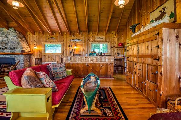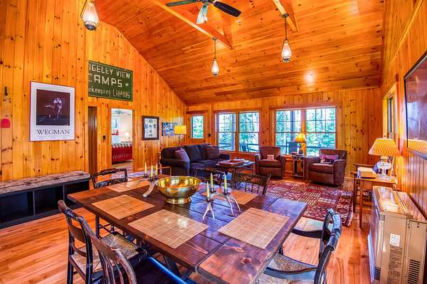 Welcome to Ganderwood, a rare and storied treasure on the shores of beautiful Gull Pond. This historic property features a grand main lodge and a charming four-season guest cabin, both just steps from the water's edge--creating the perfect setting for a private lakeside compound. Set on 10 acres with over 600 feet of pristine shoreline, Ganderwood provides exceptional privacy while being only 1.5 miles from the heart of Rangeley. The pond's clear waters are ideal for swimming, boating, fishing, and waterskiing. Easily snowmobile directly from your doorstep. Nearby, you'll find easy access to Saddleback and Sugarloaf ski destinations, making this a true four-season escape. A 2-car garage offers the perfect place to keep your skis and sleds between visits. On the market for the first time in over 50 years, this heirloom property has been featured in the architectural issue of The Boston Globe and showcases timeless Maine camp character in perfect rustic elegance. The main house and guest cottage together offer 5 bedrooms and 3 full bathrooms, with covered porches overlooking the water--perfect for relaxing and taking in the peaceful surroundings. No traffic noise, just the occasional song of the loon. Inside, warm pine walls and wood floors create an inviting, rustic charm throughout. Outside, the property features expansive open spaces, multiple shoreline sitting areas, and a large floating dock bathed in sunlight with an outstanding view of Saddleback ski mountain. Whether you envision a family compound, a legacy getaway, or a unique investment, the possibilities here are endless. Ganderwood is more than a property--it's a sanctuary where nature, history, and tranquility come together in one extraordinary place. Schedule your private showing today and experience this one-of-a-kind lakeside haven. don't miss this opportunity to call Ganderwood your Rangeley "camp".