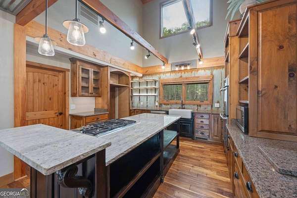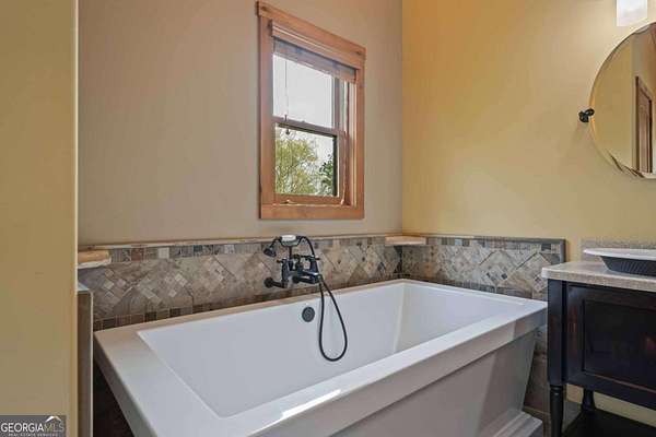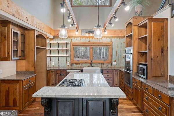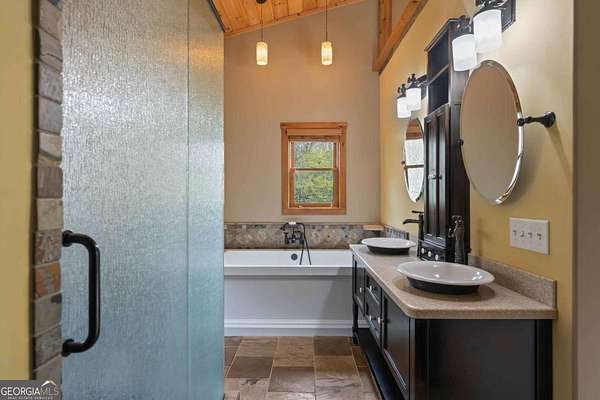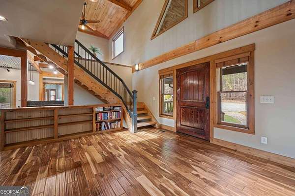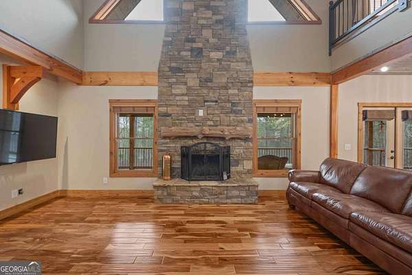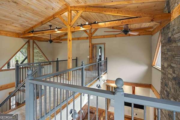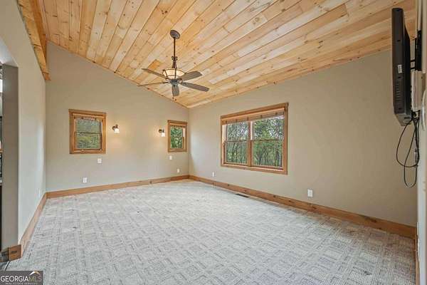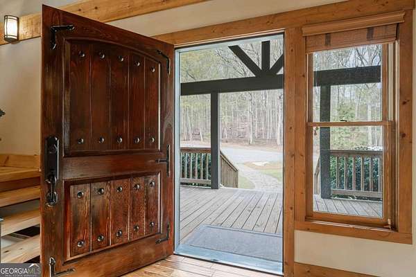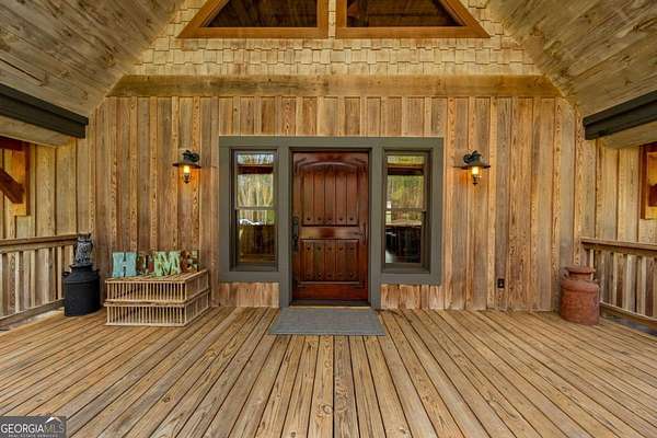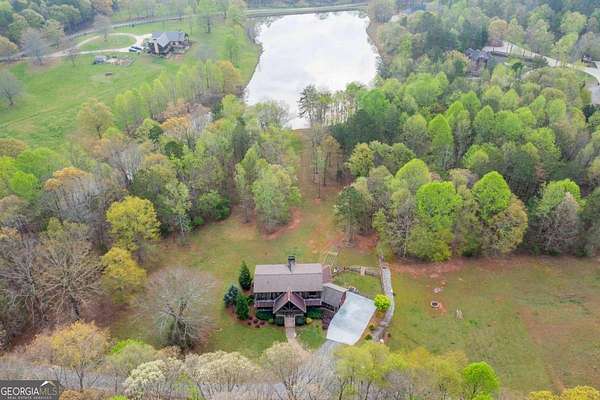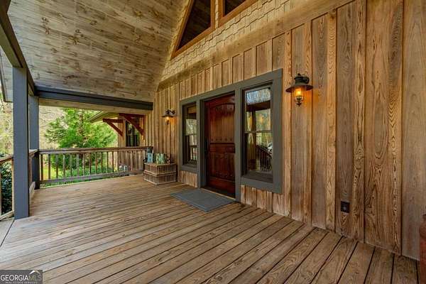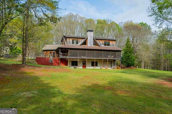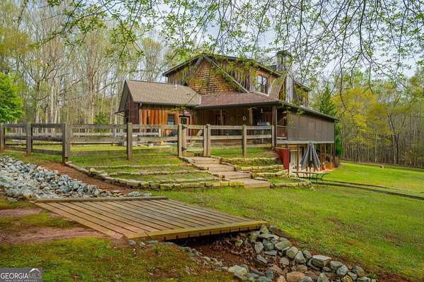 Discover an unparalleled lifestyle property nestled in the heart of Maysville, Georgia. Spanning almost 20 tranquil acres, this estate features a picturesque lake, running creek, and offers a perfect blend of natural beauty and refined living. Outdoor living is elevated by a 10x50ft. screened porch, providing the perfect vantage point to enjoy the scenic lake views while sipping your morning coffee, or weekend wine. The homes exterior is wrapped in Board & Batten Cypress, the roof, constructed from a combination of aged tin and composition tiles, adds to the home's distinctive charm. Walking up to the home, the Cobblestones beneath your feet tell a story all on their own as they are reclaimed cobblestones from the original Baker Street in Atlanta. Also used in the terraced garden located on the property. Inside the kitchen is a chef's dream, equipped with premium appliances, including a Wolfe gas range with a vented to the exterior exhaust, a built-in wine station, custom live-edge shelving, live edge granite countertops, custom cabinetry, and apron sink. The space is accentuated by Douglas fir beams, and hand-hewn Pine trim, adding a rustic elegance. The walls painted in a natural patina are the most unique wash of copper and iron paint. Solid three-quarter inch walnut flooring extends through the kitchen, living room, dining area, and foyer. The great room impresses with cathedral ceilings and a stunning stone fireplace, featuring a reclaimed cedar mantle sourced directly from the property. The tongue-and-groove pine cathedral ceiling enhances the room's warmth and character. The main floor offers two bedrooms in a convenient Jack and Jill configuration, sharing a well-appointed bathroom. Architectural details include free-floating stairs accented with custom rebar railings. The master suite is a sanctuary, featuring ambient lighting, a luxurious bathroom, including custom-built California closets, a spacious rain glass shower, soaking tub to relax, and a dressing table crafted from ambrosia maple harvested from the property's lake area. The basement is thoughtfully constructed with double-layer insulation for optimal sound and temperature control. Exterior walls and ceilings are double insulated with closed-cell spray foam insulation, and an additional foam board and/or fiberglass insulation. The basement is also plumbed, and only in need of drywall installation to offer as the final step to completion in adding an additional bedroom, bathroom, game room, etc, as well as garage space. An added benefit of this property is its land forestry conservation, offering a significant tax advantage while allowing you to enjoy this exquisite estate and minimizing your tax obligations. When I say, this is home is so artfully and thoughtfully designed, constructed, and offers an unmatched lifestyle, you must see it to understand. Embrace the opportunity to own this remarkable property, where craftsman style luxury meets nature in perfect harmony.