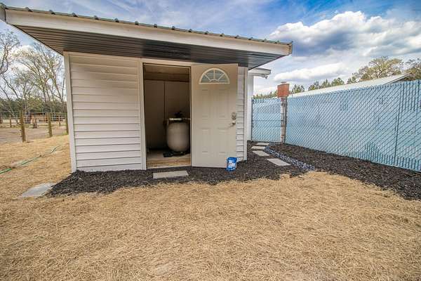 A rare opportunity to own a well-improved, turnkey horse property on approximately 13 flat, usable acres, thoughtfully designed for both equestrian use and comfortable country living. The land is thoughtfully organized with three large fenced pastures, each with xtra large run-in shelters, plus a 80 foot round pen/arena suitable for starting horses, lessons, or daily schooling. A wooded portion of the property offers natural shade and the opportunity for private riding or cart-driving trails, while an open, recently graded area is perfectly positioned for a future full-size dressage or jumping arena with natural sand footing. The front acreage also lends itself to a small cross-country course or conditioning track, making this property well-suited for multiple disciplines. The 2-bedroom, 2-bath home (built in 1970) has been refreshed with new paint throughout, new flooring, and a functional layout that looks out over the farm. Outdoors, enjoy a beautiful in-ground pool with a new pump and filter, an enclosed pump house to protect equipment, and a pool house with a private bathroom, ideal for entertaining or relaxing after a day in the saddle. Equestrian improvements include two lighted tack-up bays, a fully remodeled 250 sq ft tack room, and two wells, each with 250-gallon holding tanks-an exceptional feature for horse owners. A nearly completed 800+/- sq ft 1BR/1BA cottage offers potential for a guest suite, in-law quarters, or rental income. Predator-protected chicken coop included. Well-suited for private horses or a small lesson program, this property offers flexibility for multiple disciplines and is ready for your horses today.