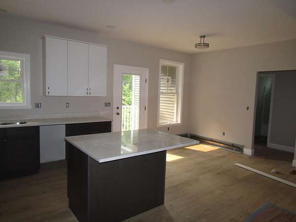 New construction all on one level with a walkout basement. This house sits on a 3.7 acre lot on a dead end private road. The backyard offers great privacy with a walkout basement that is currently unfinished but with 4 full size windows and a slider could be a great option to add another 1000+ finished square footage. The single level 1627 sf house offers one level living with kitchen,dining,living,bedrooms, baths, and laundry all on one level. The open floor plan has a kitchen with granite counters and an island with a breakfast bar. The dining area has great views of the back yard and a balcony for the morning coffee or for exterior dining. The living room has a vaulted 14 ft ceiling. The master bedroom has a walk-in closet with raised ceilings and the master bath has a garden tub, shower, twin sinks and a dedicated vanity area and an additional walk-in closet. The opposite end of the home has 2 bedrooms and a full bath. A laundry room is located on the master bedroom end of the home. The house has a baseboard hot water furnace with on demand hot water and a minisplit heat pump / AC with a head in the living room and in the master bedroom. Come take a look, and please excuse the construction site. It's not complete but it's 80% done. Expected completion is around Sept 15. The yard will be graded and seeded for the sale. Sale includes all kitchen appliances.