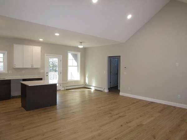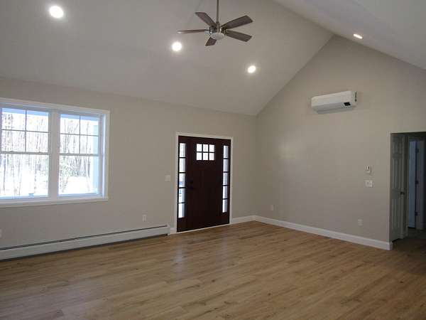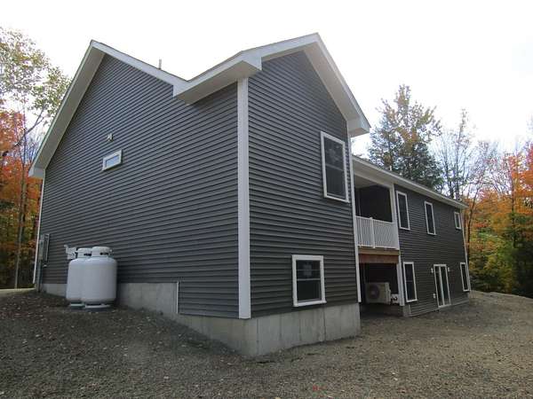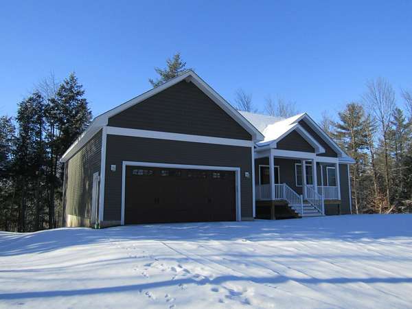 New construction move in ready and complete all on one level with a walkout basement. The seller is offering a $5000 appliance concession for the buyer to choose what they want for appliances. This house sits on a 3.7 acre lot on a dead end private road. The backyard offers great privacy with a walkout basement that is currently unfinished but with 4 full size windows and a slider that could be a great option to add another 1000+ finished square footage. The single level 1627 sf house offers one level living with kitchen,dining,living,bedrooms, baths, and laundry all on one level. The open floor plan has a kitchen with granite counters and an island with a breakfast bar. The dining area has great views of the back yard and a balcony for the morning coffee or for exterior dining. The living room has a vaulted 14 ft ceiling. The master bedroom has a walk-in closet with raised ceilings and the master bath has a garden tub, shower, twin sinks and a dedicated vanity area and an additional walk-in closet. The opposite end of the home has 2 bedrooms and a full bath. A dedicated laundry room is located on the master bedroom end of the home. The house has a baseboard hot water furnace with on demand hot water and a minisplit heat pump / AC with a head in the living room and in the master bedroom. Come take a look this home is complete and can close on short notice. Unlike most new development this property has no deed restrictions or covenants.