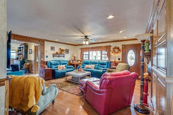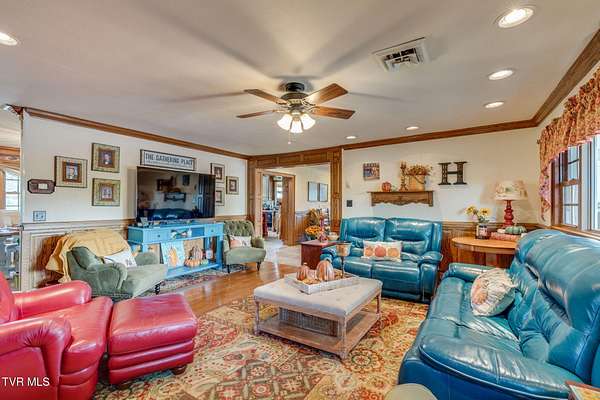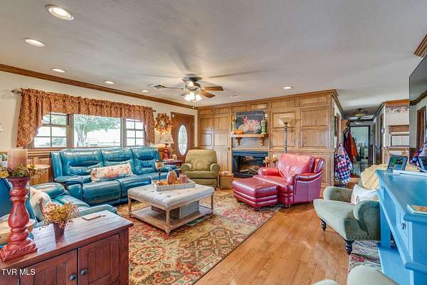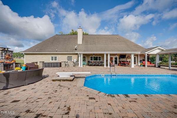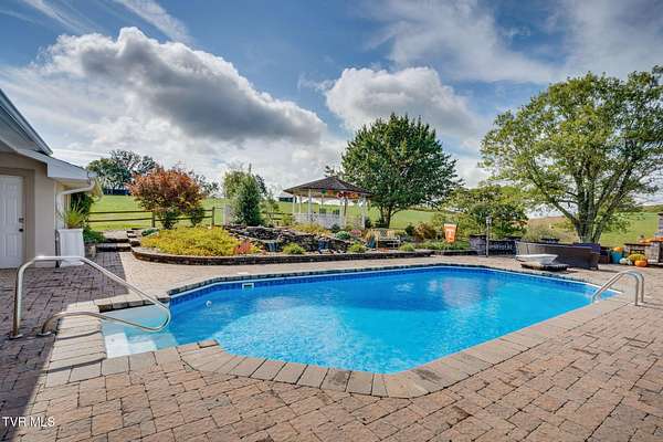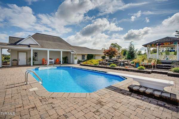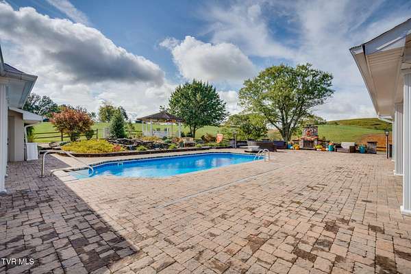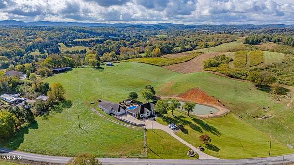 What a find-never before offered on the market! Welcome to Riverview Farm, located on the banks of the Holston River and just five minutes south of historic Rogersville. This unique property features 18.90 gently rolling acres, perfect for livestock or simple family enjoyment. The main home is a traditional-style, nearly 3,000 sq. ft., main-level residence with 3 bedrooms and 3 baths. As you enter through the front door, you'll immediately notice the rare beauty of quality woodwork and custom features. The great room offers a fireplace and custom cabinetry. If the kitchen is the heart of the home, then this one has a big heart. This magnificent, oversized kitchen boasts an abundance of custom handmade oak cabinets and Quartz countertops. It also features a huge custom-built island, double side-by-side refrigerators, double ovens, a convection oven, an under-counter microwave, and a warming drawer. The home also includes a summer kitchen with easy access to the pool area. And yes-there is a pool! At the rear of the home, you'll find a large built-in saltwater swimming pool, a beautiful water feature and waterfall, an outdoor fireplace and sitting area, and a gazebo. Evening views and sunsets from here are nothing short of spectacular. The finished lower level includes a den with another fireplace, as well as two additional finished rooms ready for you to customize with your imagination. If you're a fisherman, you can choose between the well-stocked on-site pond or the Holston River. For the car enthusiast, there is an approximately 3,000 sq. ft., 3-bay garage on the property. You'll also find a farm barn/shed and a log cabin on-site. Nearly the entire parcel is already fenced. Don't miss the opportunity to own this wonderful mini-farm with all its many features. Qualified buyers only! Listing agent is a relative of the seller.