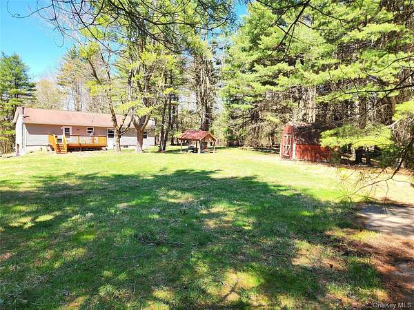 Motivated seller! Calling all nature lovers! Do not pass up this opportunity to own this 3 bedroom, 2 full bath ranch home on gorgeous 21+ acres. Substantial eat-in-kitchen with gas stove, dishwasher and plenty of cabinet/countertop space for the home chef. Step out of kitchen to new deck for morning coffee. Spacious living room with wood floors, large primary bedroom and bath with jet tub, double vanity and rain shower stall. 2 more bedrooms with closets and another full bath with tub. Sizeable finished basement with wood stove for family room, art studio, movie room, kids play room or office. Walk out to 1 car garage with plenty of storage space. Front of house has another sundeck and gazebo with hot tub. Tremendous grassy knoll leads to storage shed and great barn with 2 bays, water, electric, 2 horse stalls, hay storage and chicken coop. Paddocks, stone walls, pines, hardwoods, fruit trees, open meadows and trails. Tucked up off a quiet country road this property has endless uses. Hunters welcome! Deer, fox, turkey and plenty more local game. Have a mini farm, go cross-country skiing, 4 wheeling and foraging in your own private forest. Nearby Bethel Woods Center for the Arts, festivals, breweries, waterfront dining, lakes, mountains and rivers. Call to take the tour.