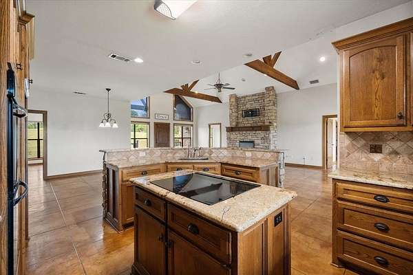 Inside the beautiful neighborhood of Pearl Valley Estates sits this gorgeous home. At 6.656(+-) acres, this property has room to roam and so many great features! As you step inside the grand entrance, you will be taken aback by the enormous windows giving tons of natural light and breathtaking views of Richland Chambers Lake. The open concept living & dining room is adorned with rustic charm, vaulted ceilings and natural wood beams. A wonderful space for entertaining family and friends! Once out back, you'll find a large covered patio and jacuzzi for relaxing after a long day. Put your mind at ease with a tornado shelter right outside the back door! And for those who love to tinker, you have a huge shop with covered carport, plenty of storage and utilities in place. So much to love, come see this one today!