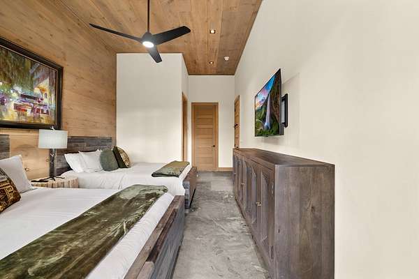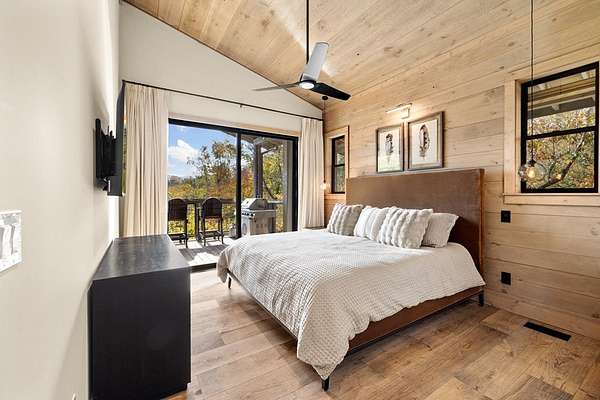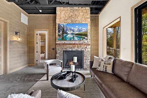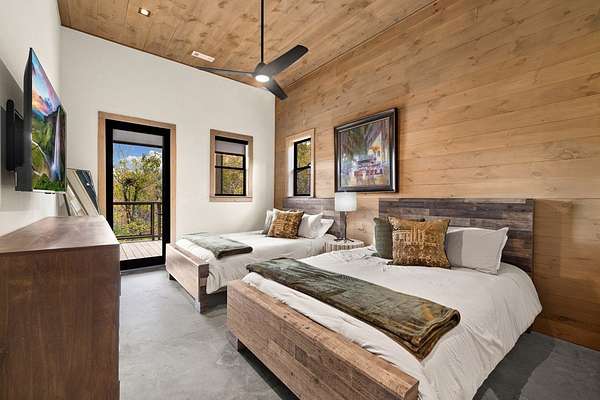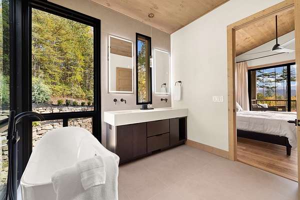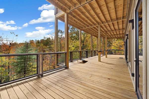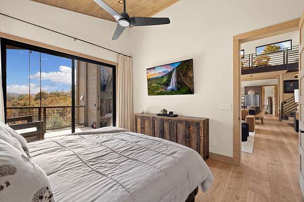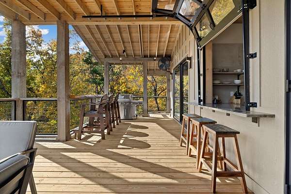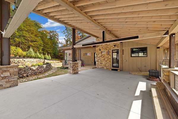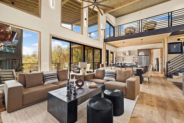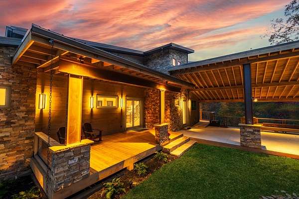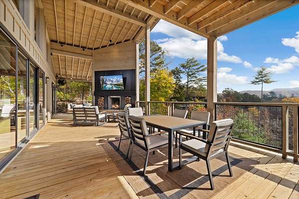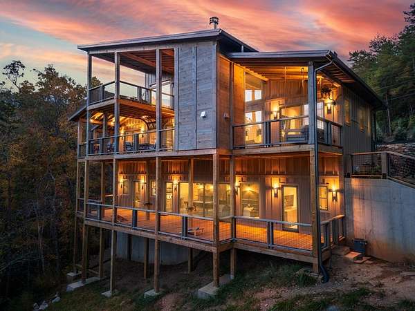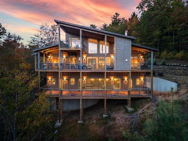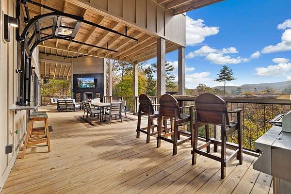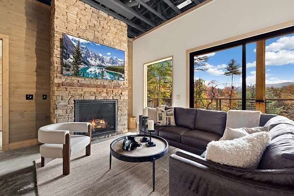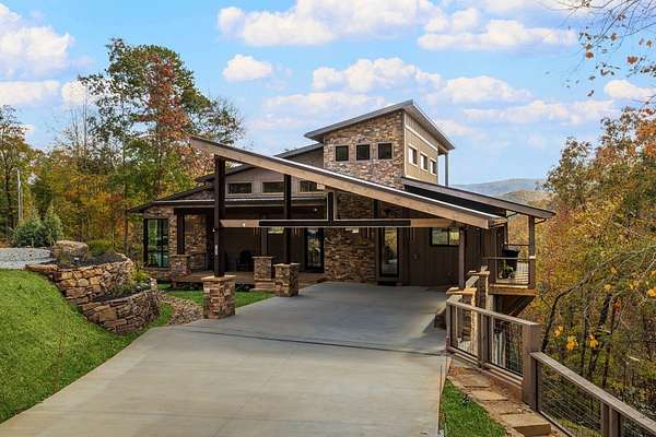 Introducing The Ridge—a stunning, brand-new luxury mountain retreat just minutes from the charm of downtown Blue Ridge, GA. From the moment you step inside, you're greeted by breathtaking, panoramic mountain views framed by soaring ceilings and dramatic floor-to-ceiling windows. This home masterfully blends indoor and outdoor living, creating a sanctuary where you can relax, recharge, and revel in nature's beauty. Designed with entertaining in mind, the custom kitchen features sleek GE Caf appliances and a unique garage-door-style window that opens directly to an outdoor grilling station—perfect for seamless al fresco dining. Engineered wide-plank hardwood flooring flows throughout, combining durability with a warm, elegant aesthetic, while the Tennessee stack stone exterior adds a timeless, rustic charm. Plus, the LP SmartSide walls ensure minimal exterior maintenance, so you can spend more time enjoying your retreat and less time worrying about upkeep. Step onto the expansive property, and you'll find two serene, natural springs bubbling peacefully, offering a sense of tranquility that's hard to match. The land also provides endless potential for creating walking trails through the surrounding woods, giving you the opportunity to explore and immerse yourself in nature right at your doorstep. Dreaming of expansion? There's ample space to build a guest home or even a whimsical treehouse—perfect for hosting family, friends, or future retreats. Every detail of this home exudes luxury and comfort, with thoughtful touches like a large steam shower for ultimate relaxation and a dreamy deck swing bed for lazy afternoons basking in the mountain breeze. The amenities don't stop there—The Ridge also boasts a Tesla charging station, a pool table, games, a gas range, and an inviting outdoor fire pit overlooking the breathtaking mountain vistas. Whether you're planning a yoga retreat, family getaway, wellness escape, or corporate retreat, The Ridge offers it all!
