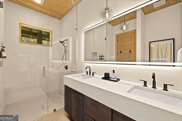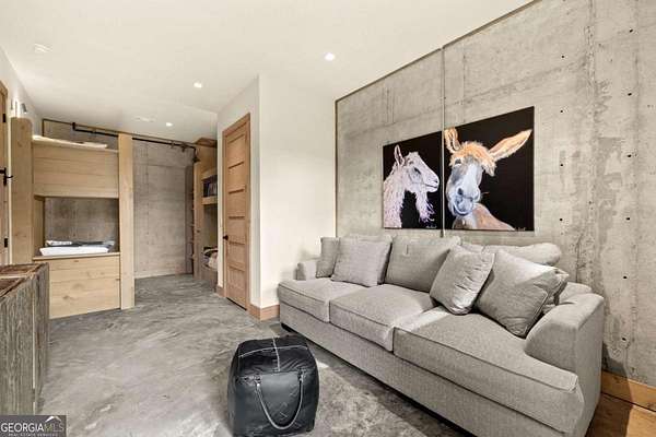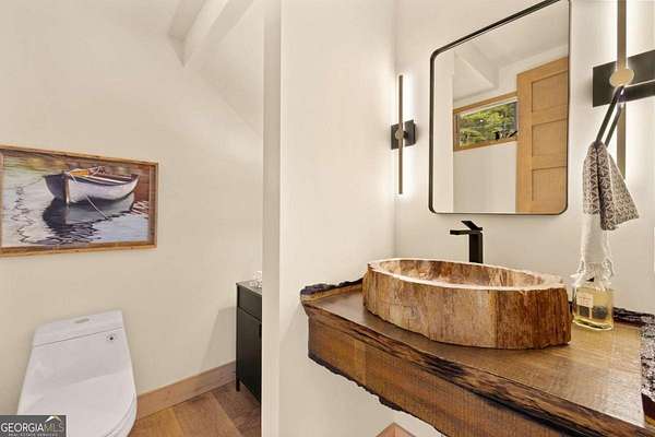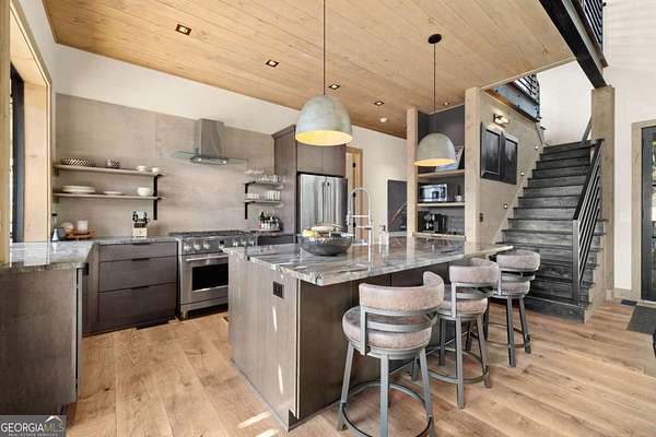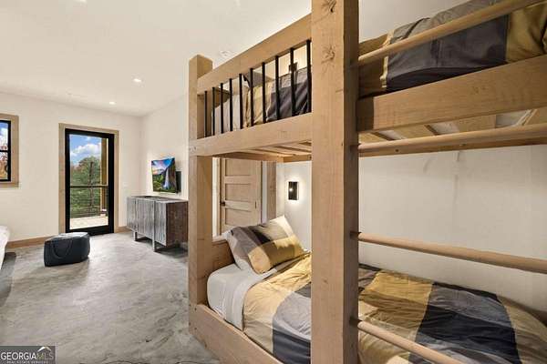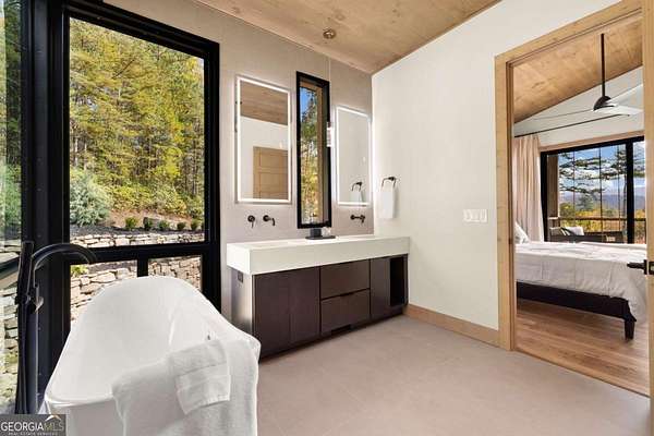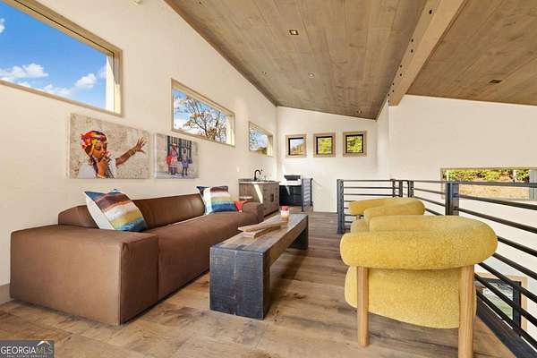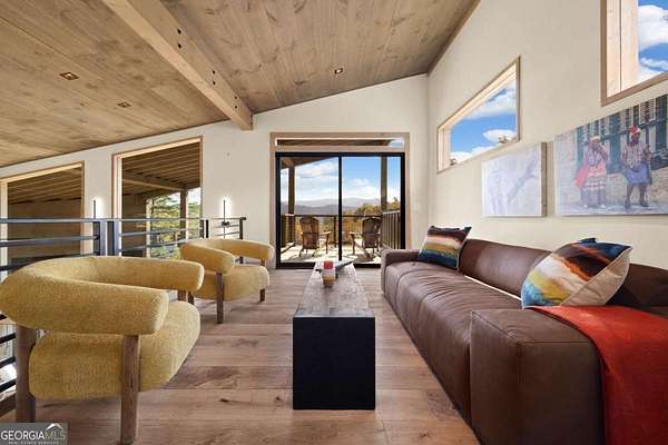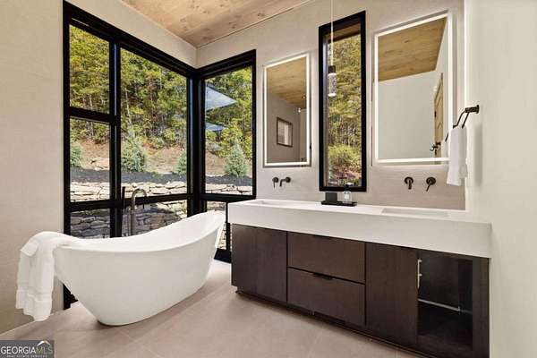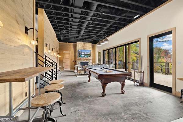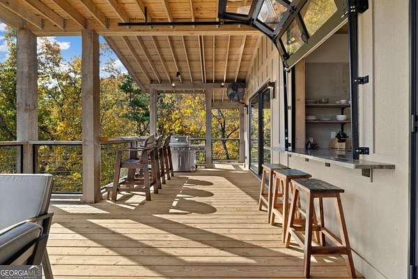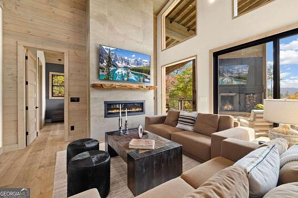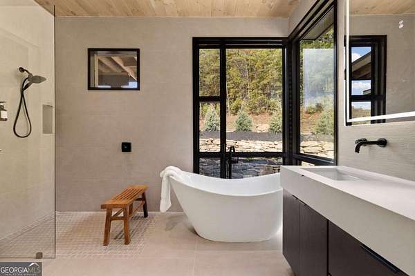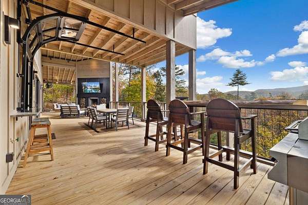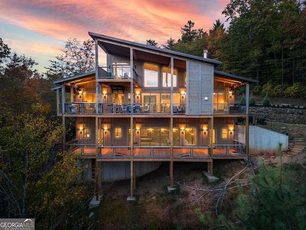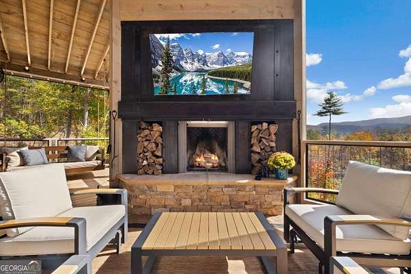 Introducing The Ridge-a stunning, brand-new luxury mountain retreat just minutes from the charm of downtown Blue Ridge, GA. From the moment you step inside, you're greeted by breathtaking, panoramic mountain views framed by soaring ceilings and dramatic floor-to-ceiling windows. This home masterfully blends indoor and outdoor living, creating a sanctuary where you can relax, recharge, and revel in nature's beauty. Designed with entertaining in mind, the custom kitchen features sleek GE Caf appliances and a unique garage-door-style window that opens directly to an outdoor grilling station-perfect for seamless al fresco dining. Engineered wide-plank hardwood flooring flows throughout, combining durability with a warm, elegant aesthetic, while the Tennessee stack stone exterior adds a timeless, rustic charm. Plus, the LP SmartSide walls ensure minimal exterior maintenance, so you can spend more time enjoying your retreat and less time worrying about upkeep. Step onto the expansive property, and you'll find two serene, natural springs bubbling peacefully, offering a sense of tranquility that's hard to match. The land also provides endless potential for creating walking trails through the surrounding woods, giving you the opportunity to explore and immerse yourself in nature right at your doorstep. Dreaming of expansion? There's ample space to build a guest home or even a whimsical treehouse-perfect for hosting family, friends, or future retreats. Every detail of this home exudes luxury and comfort, with thoughtful touches like a large steam shower for ultimate relaxation and a dreamy deck swing bed for lazy afternoons basking in the mountain breeze. The amenities don't stop there-The Ridge also boasts a Tesla charging station, a pool table, games, a gas range, and an inviting outdoor fire pit overlooking the breathtaking mountain vistas. Whether you're planning a yoga retreat, family getaway, wellness escape, or corporate retreat, The Ridge offers it all!