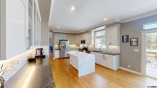 Samantha R Gallant, Keller Williams Realty Southwest Associates, LLC, C: 970-759-0440, samanthagallant@kw.com, http://samanthagallant.com: Classic Colorado Charm on 35 Acres of Pines & MeadowsExperience the beauty of the Southwest Colorado lifestyle on this picturesque 35-acre property nestled in the rural heart of Bayfield. Surrounded by towering pines and wide-open meadows, this private haven offers space, serenity, and all the mountain contemporary elegance of a retreat in the pines.The warm, inviting interior features eucalyptus hardwood floors, quartz and quartzite countertops throughout, and two distinct living spaces designed for both relaxation and entertaining. A dual-sided fireplace adds charm and comfort, while a remodeled spa-inspired primary suite includes an electric fireplace in the bathroom and a walk-in closet with heated floors for year-round luxury.The 3-bedroom layout includes a flexible bonus room ideal as a home office, gym, or cozy den. Outside, enjoy the oversized 3-car garage with an attached carport, and a huge concrete back patio that overlooks the tranquil meadows and tall pines--perfect for outdoor gatherings or quiet mornings. For the green thumb, a raised bed garden is ready for your seasonal harvests.A new metal roof (2022) and an owned 1,000-gallon propane tank add efficiency and long-term value. Whether you're exploring your private slice of Colorado wilderness or simply enjoying the peace and quiet, this property is a true mountain lifestyle offering.