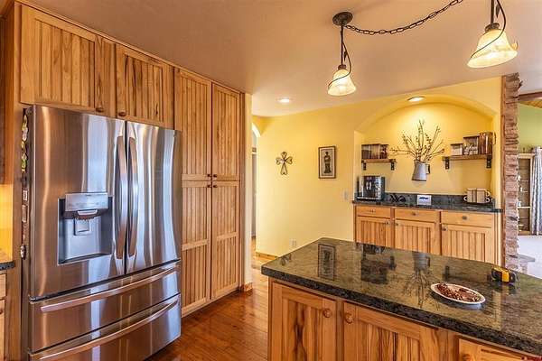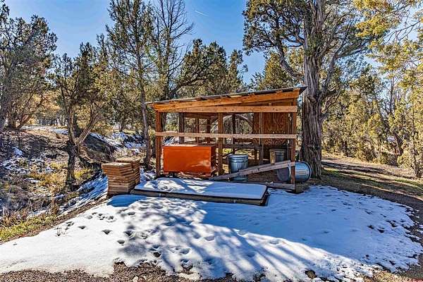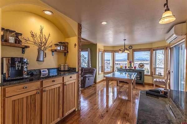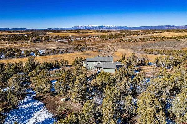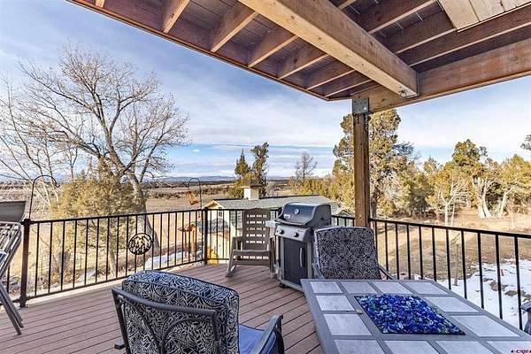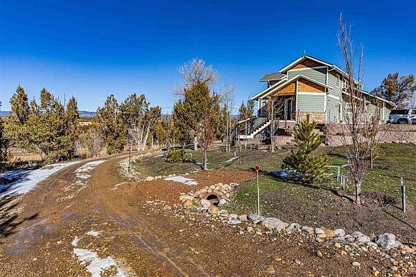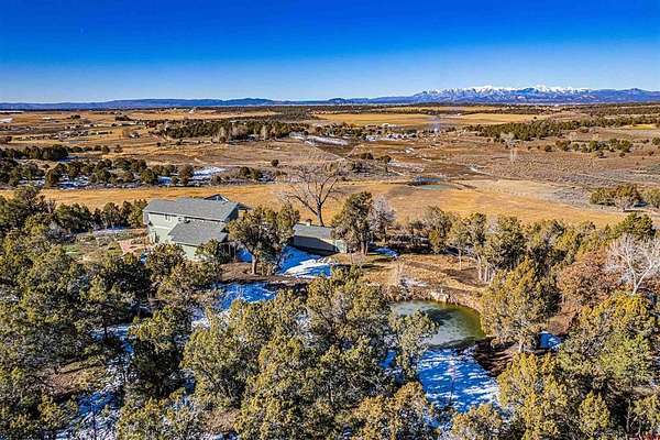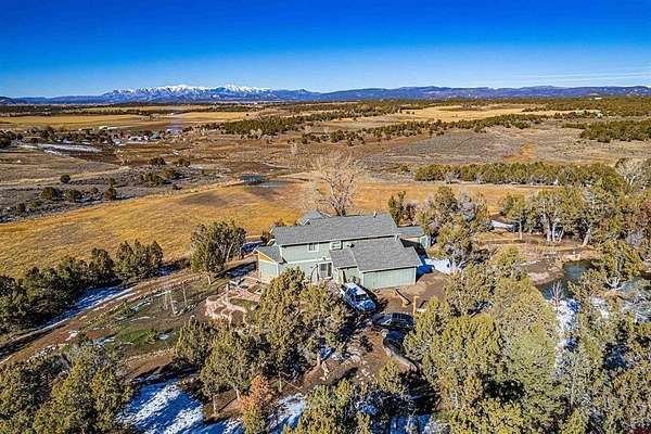 Allen Elmore, eXp Realty, LLC, C: 505-686-3831, Allen@AE.Properties, www.crenmls.com: "Where Eagles Soar" is a remarkable Colorado mountain farmhouse offering privacy, productivity, & panoramic views across nearly 24ac, including approximately 16ac irrigated lush farmland. The property features 3 ponds, 2 productive pastures, & historically produces around 1,000 bales of alfalfa annually, an exceptional combination of beauty & function. The 2,829sf residence includes 3 bedrooms, 2 full baths, & 2 1/2 baths, thoughtfully designed to maximize comfort & views. Numerous recent improvements enhance both the home & the land, including 7 silt fences, approximately 1,000ft of buried 10" irrigation pipe, pond construction & cleaning, landscaping, exterior stair improvements, a new wooden shed w/ lean-to, interior paint updates, pantry lighting, laundry cabinetry, & upgraded driveway drainage, among others. The main level offers entry either into the living room or through the back Trex deck into a welcoming foyer. The chef's kitchen is well appointed w/ granite countertops, hardwood cabinetry, island, pantry-style storage, reverse osmosis system, coffee bar, dishwasher, stainless 5-burner gas range, refrigerator w/ ice maker, microwave, & hood vent. The living room features vaulted tongue-and-groove ceilings, expansive mountain views, a stacked-stone gas log fireplace, & ceiling fan. The dining room provides direct access to the back Trex deck, both offering sweeping 180-degree mountain vistas. 2 main-level bedrooms include 1 w/ French door access to the deck & another w/ exceptional views. These bedrooms share a beautifully updated full bath w/ tiled tub. A guest 1/2 bath & a laundry room w/ cabinetry & counter space complete the main floor. The upper-level primary suite is a true retreat, featuring a spacious stair landing, oversized closet, a flexible retreat area easily convertible to an additional walk-in closet, & a reading nook w/ built-in benches & bookshelves overlooking panoramic mountain & valley views. A private Trex deck, double-sided gas log fireplace, & luxurious en suite bath complete the space. The bathroom includes dual sinks, lavatory, an oversized soaking tub that shares the fireplace, & a walk-in tiled shower w/ dual shower heads. The lower level includes a mudroom entry w/ dual closets, an oversized finished garage w/ workshop & storage room, & an additional finished area on the opposite side of the garage. This versatile space includes two rooms, a storage room, & a half bath--ideal for an office, den, game room, or guest space. W/ the addition of a shower & kitchenette (space already available), this area could be converted into a separate apartment or accessory dwelling unit. Exterior features include a large new wooden equipment shed adjacent to an existing smaller shed w/ lean-to for tractor & equipment storage, a substantial chicken coop, RV & equipment-friendly access, & a 450-foot deep domestic well. The home is heated w/ electric baseboard heat & cooled & supplemented by 3 mini-split HVAC units. A rare opportunity to own a productive, well-improved agricultural property paired w/ a thoughtfully designed mountain home... offering unmatched views, privacy, & versatility in a true Colorado setting.
