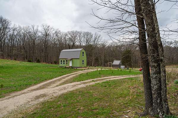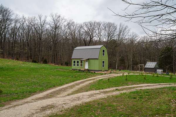 An outdoorsman's paradise! This property boasts 79.22 acres surrounded on 3 sides by Mark Twain National Forest. Less than 10 miles to West Plains, MO with shopping, groceries, Ozarks Medical Center, Missouri State University-West Plains, and more. An off grid cabin boasts a living space, kitchen area, bathroom, and an upstairs loft providing a master bedroom with space for a bed, a walk in closet, and bonus area. The space utilizes RV style components allowing for water to be pumped through the sinks, toilet, and shower. Cooking is possible with the plumbed propane lines. The outdoor space includes an outdoor shower, garden area, and views for days. A metal shed provides ample storage. There's also a small outbuilding that can be used for storage or as a greenhouse. The property itself has been leased for use as a working cattle farm with over 50 acres of open land and pasture and three ponds. Two of the ponds hold water year round and the other one does except during droughts. Three large patches of woods provide refuge for a plethora of wildlife including white tail deer, turkeys, and other game animals. The property is encompassed on the south, east, and west by Mark Twain National Forest, providing thousands upon thousands of acres of hiking, exploration, hunting, and more. You can walk from your front door all the way to Northfork River without ever stepping foot on private land or crossing a highway. Truly a unique property and a great opportunity to own nearly 80 contiguous acres bordering national forest.